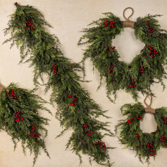 20" PINE, CEDAR & BERRIES HANGING WREATH