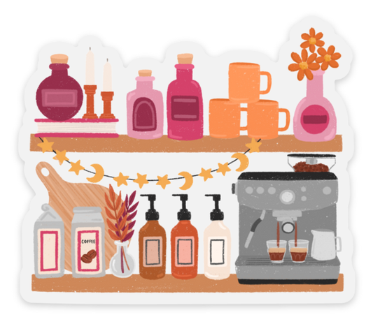 Clear Pumpkin Spice Witch Coffee Bar Sticker 2.9x2.9 in.