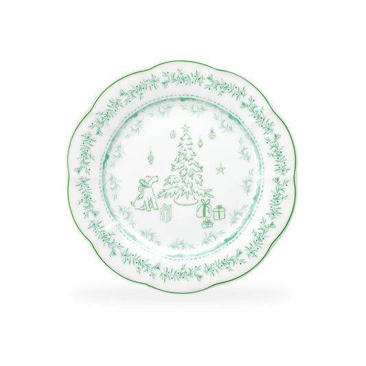 Festive Pup and Tree Fine Porcelain Dessert Salad Plate