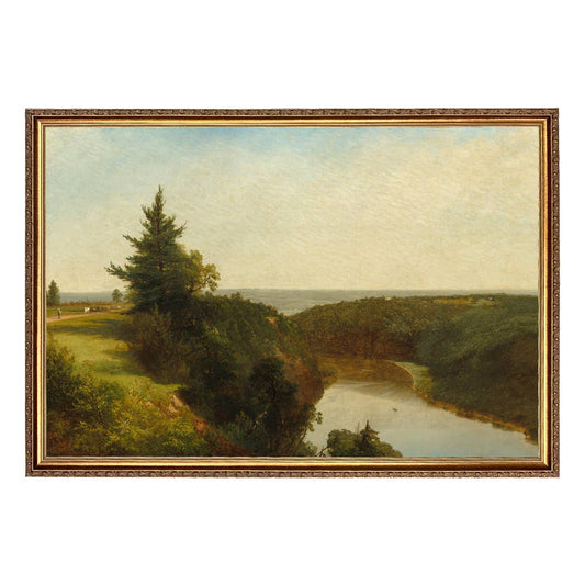 River View Scenic Landscape Oil Painting Print on Canvas: 7" x 10"
