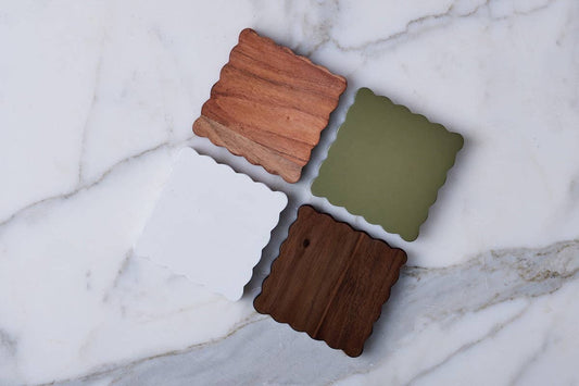 Scalloped Wood Coasters, Square, Vineyard Colors