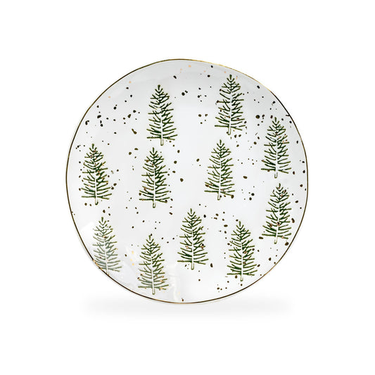 Winter Pine Trees Organic Shape 7.5" Dessert Plate
