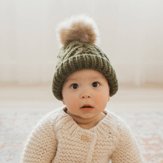 Mossy Pop Pom Pom Beanie Hat Baby & Kids: M (6-24 months)