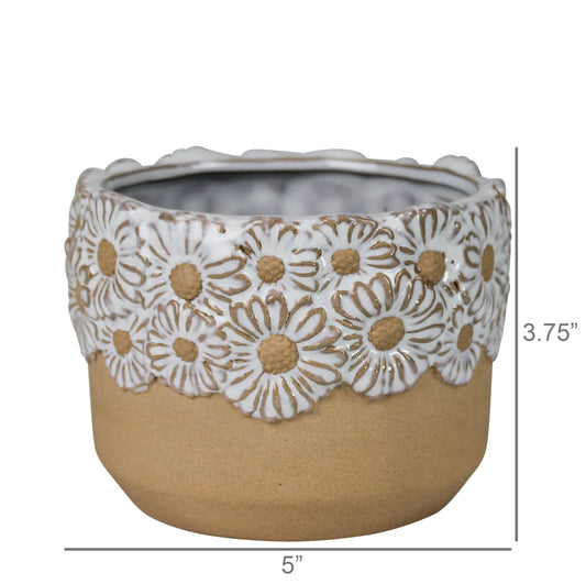 Daisy Rim Cachepot, Ceramic - 4”