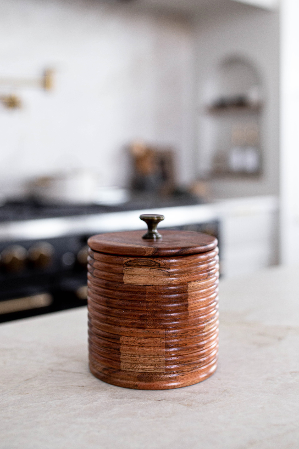 Acacia Wood Ribbed Jar