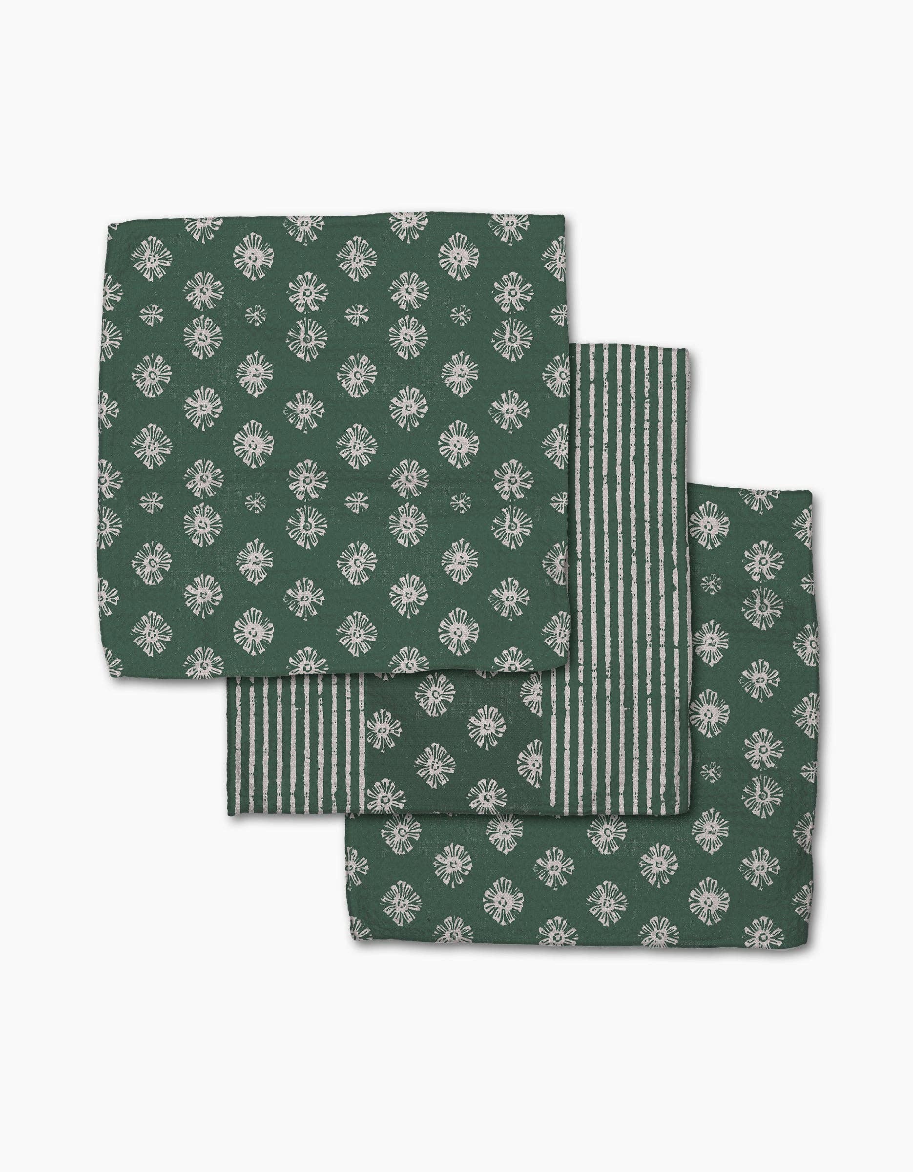 Dishcloth Set - 3 Pack Dish it out. These can take it! Our Dishcloths are everything you love about the original Geometry Kitchen Towel – in mini-size! Scrub, wipe, shine and repeat – our fast-drying, super-absorbent dishtowels can handle your biggest messes with ease (and a whole lot of style). Created from our signature Geoweave(™) fabric, perfect for surface cleaning and shining. ♺ Made from post-consumer recycled materials * 10" x 10" * Single-sided print. Chore responsibly. From scrubbing pots and pans to wiping up spills to accenting your kitchen with the season’s most captivating prints, our Dishcloth Sets will be your constant companion – and they’re a friend to the environment too.