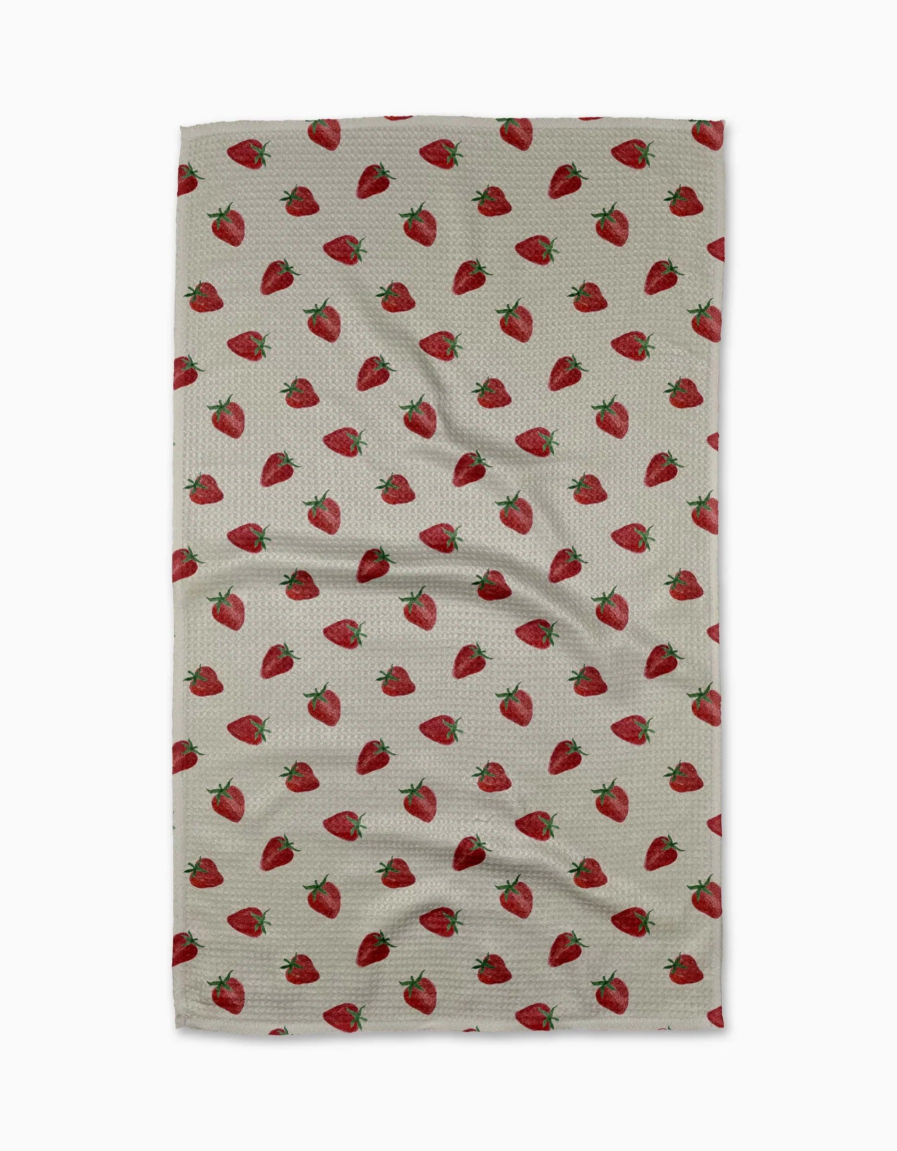 Berry Patch Tea Towel. Say hello to the original favorite! The Geometry House Tea Towel has earned its cult status for good reason. Crafted from tightly-woven Geoweave™ fabric, it’s super absorbent, dries fast, and stays wrinkle-free. This towel is designed to perform while adding a touch of charm to your kitchen. ♺ Made from post-consumer recycled materials 18" x 30" Single-sided print
