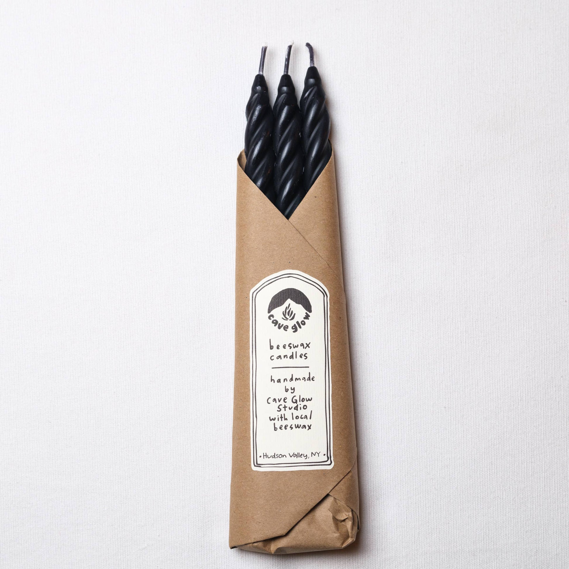 Black Beeswax Taper Candles Set of 3: Spiral Taper