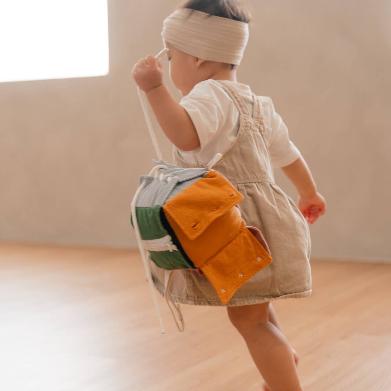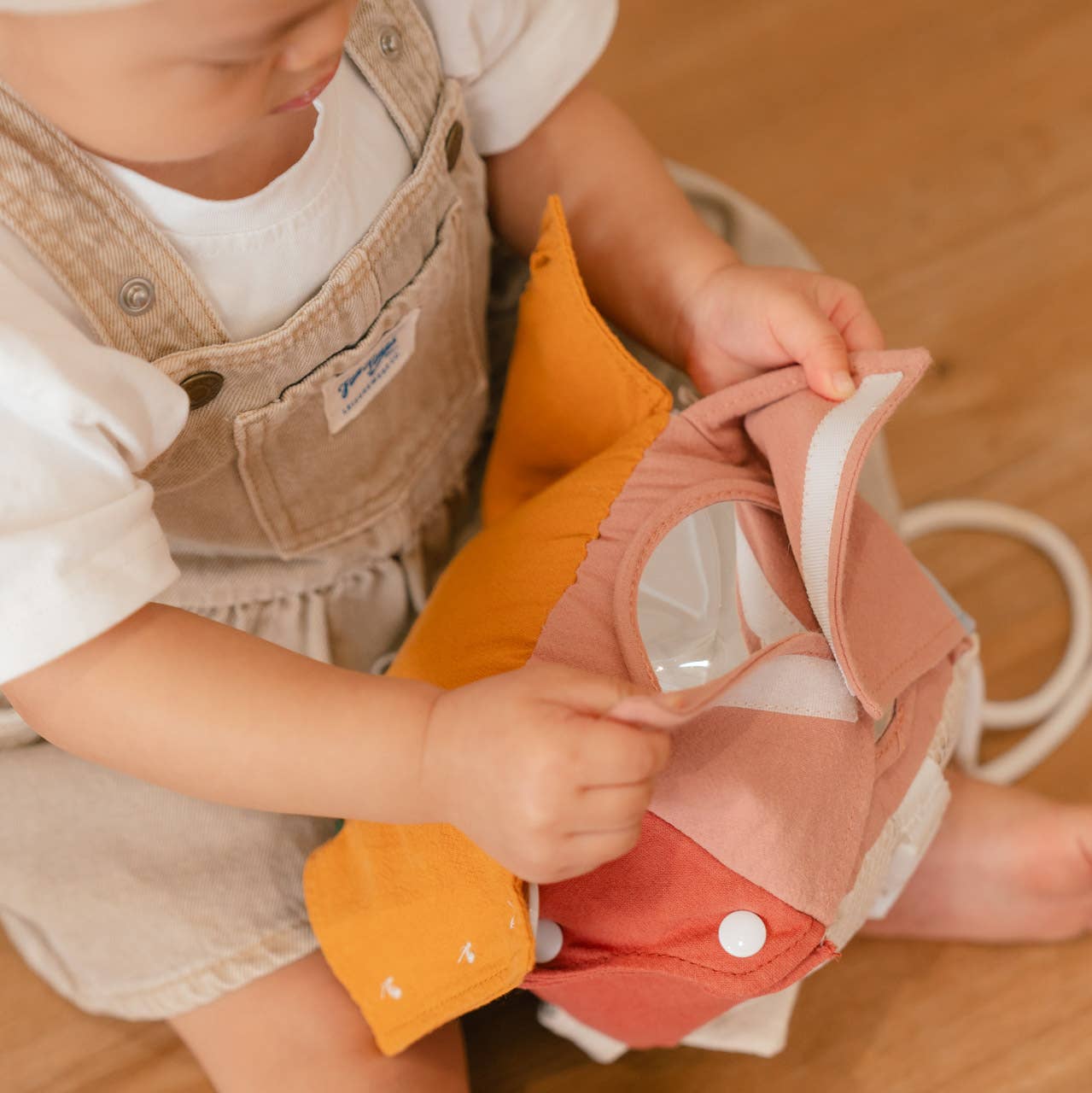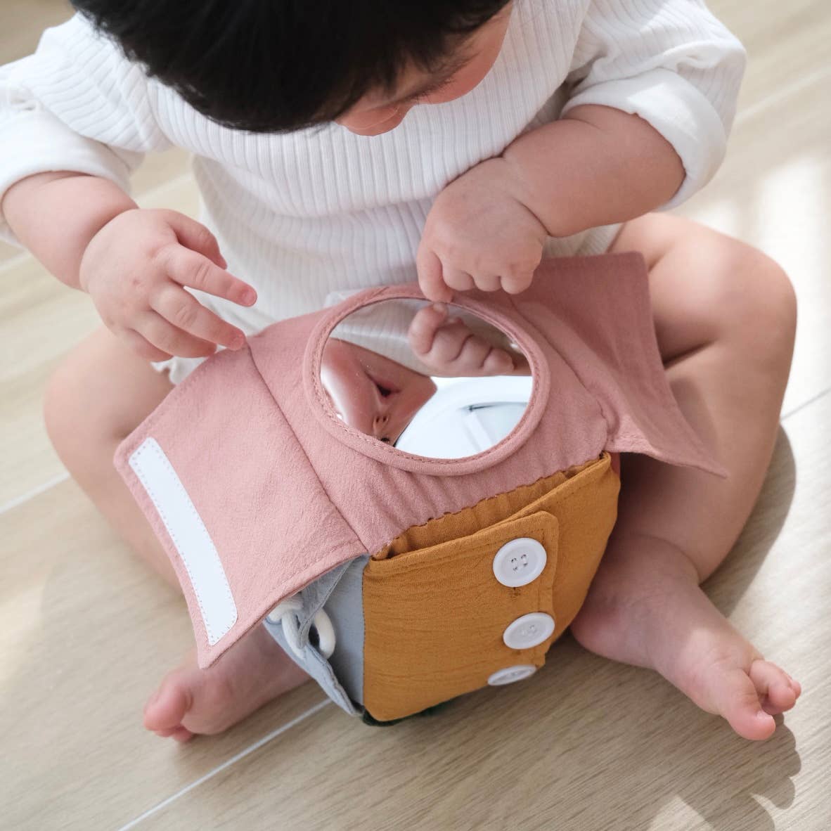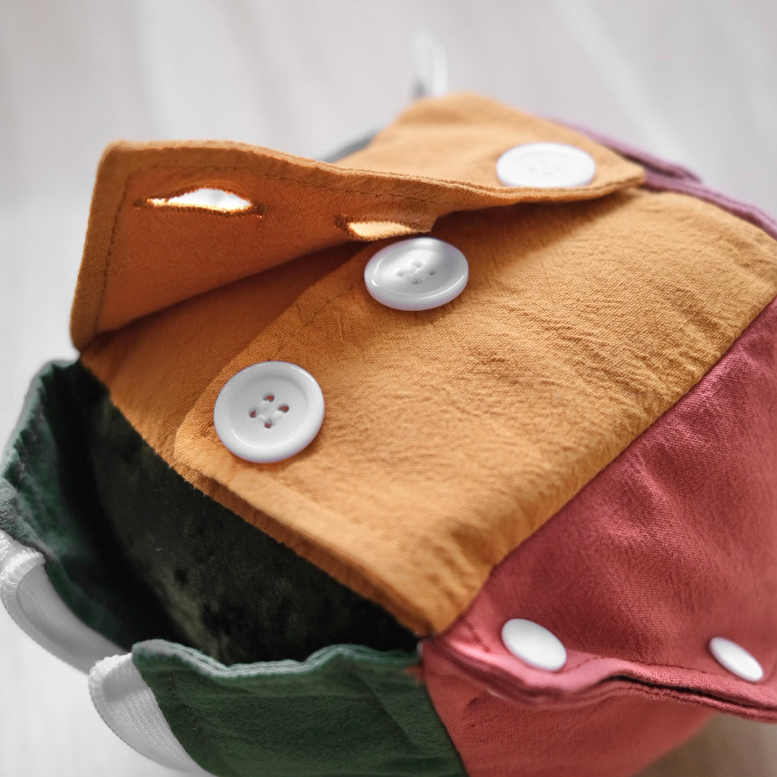 Provide our BUSY CUBE to your little one and let them learn 6 different essential ways of dressing themselves. Perfect to teach them to use their fingers and practical life skills! The snap strap allows easy attachment to your one's wrist or strollers and baby gyms! Approximately: 6 x 6"