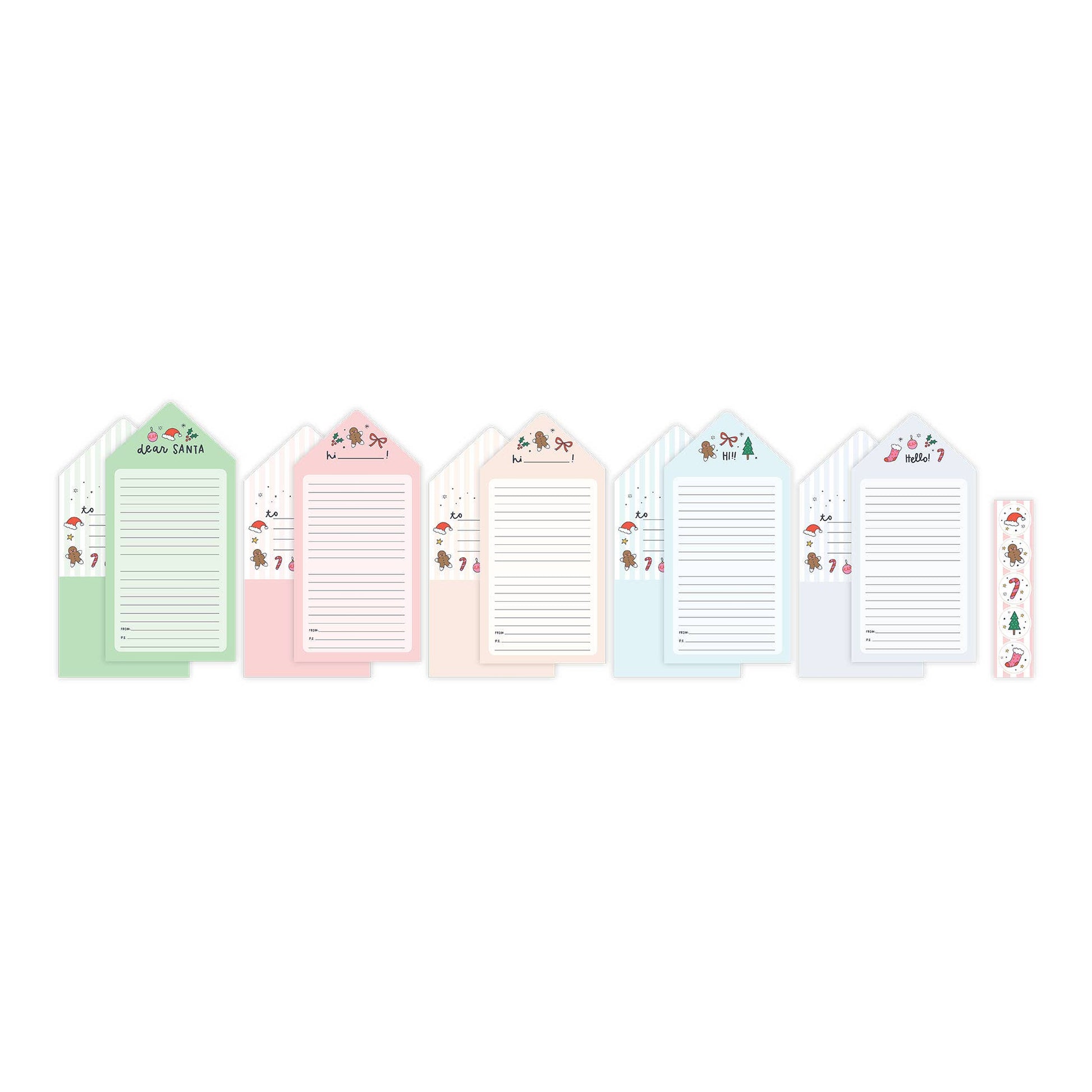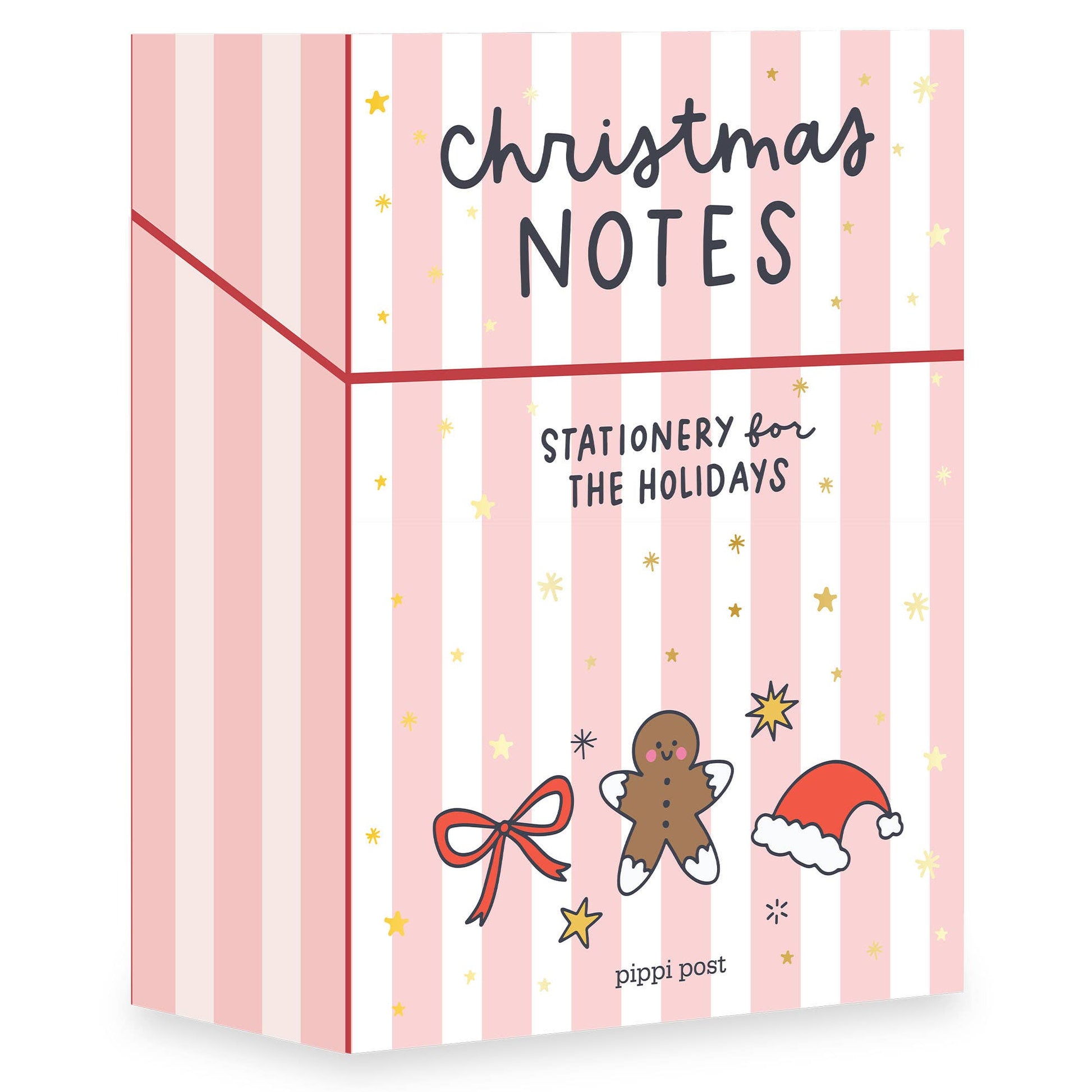 Send a little holiday cheer with this festive Christmas Notes Boxed Stationery Set! This charming collection includes beautifully designed fold-out notecards in soft pastel hues, featuring gingerbread cookies, candy canes, and cozy winter illustrations. Each card opens to reveal a lined writing space, perfect for heartfelt holiday messages, Christmas wish lists, or letters to Santa. The set comes in a coordinating keepsake box with gold foil details, making it a delightful gift for stationery lovers. Whether you’re writing warm wishes to loved ones or spreading Christmas magic, this set is a must-have for the season!