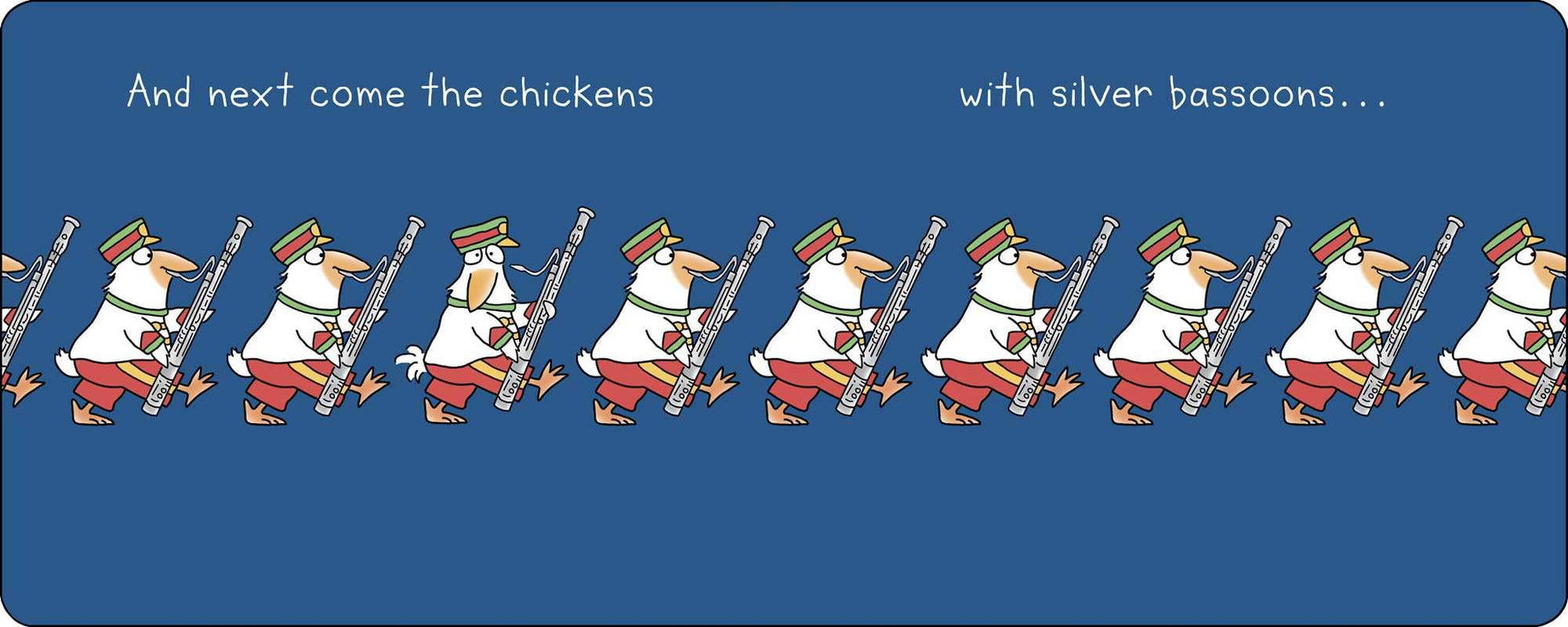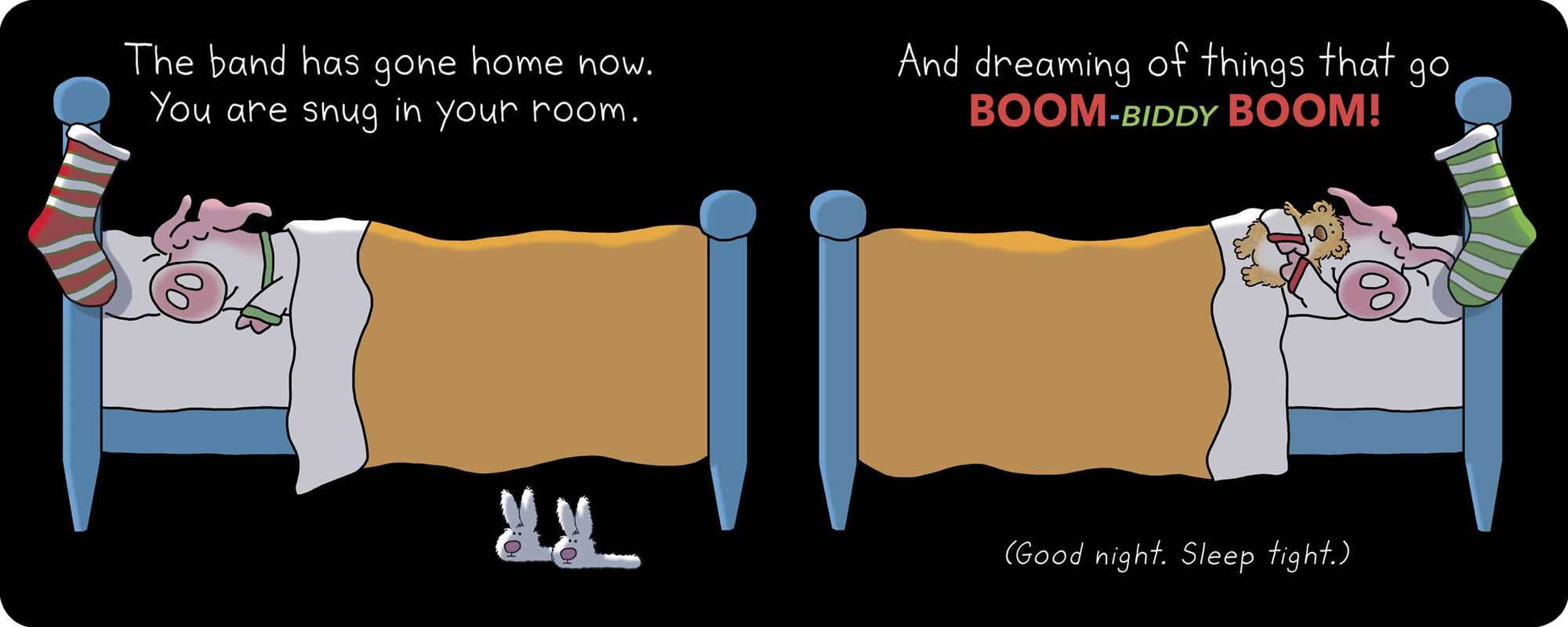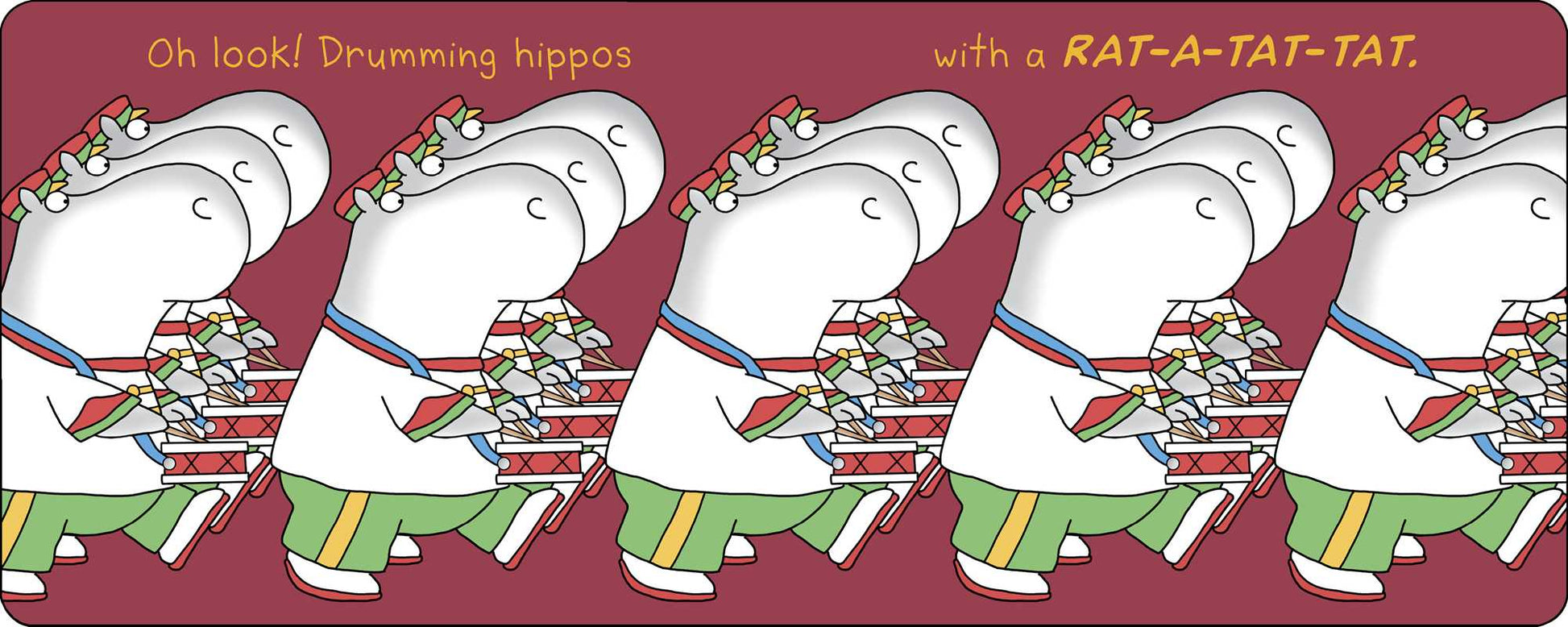 [Little Simon] From this rousing beginning unfolds Christmas Parade, a merry board book filled with hilarious characters from the one and only Sandra Boynton! Written with the irresistible rhythm of a lively marching band and illustrated with Boynton’s signature characters, including chickens with bassoons, mice with piccolos, a tiny bird with a large tuba, and a Santa rhino with a sack full of presents, Christmas Parade is a superb present for young children and families everywhere. BOOM-biddy! BOOM-biddy! BOOM BOOM BOOM… What’s that noise filling the room? I think that’s the sound of the CHRISTMAS PARADE! Run to the window! Pull up the shade!