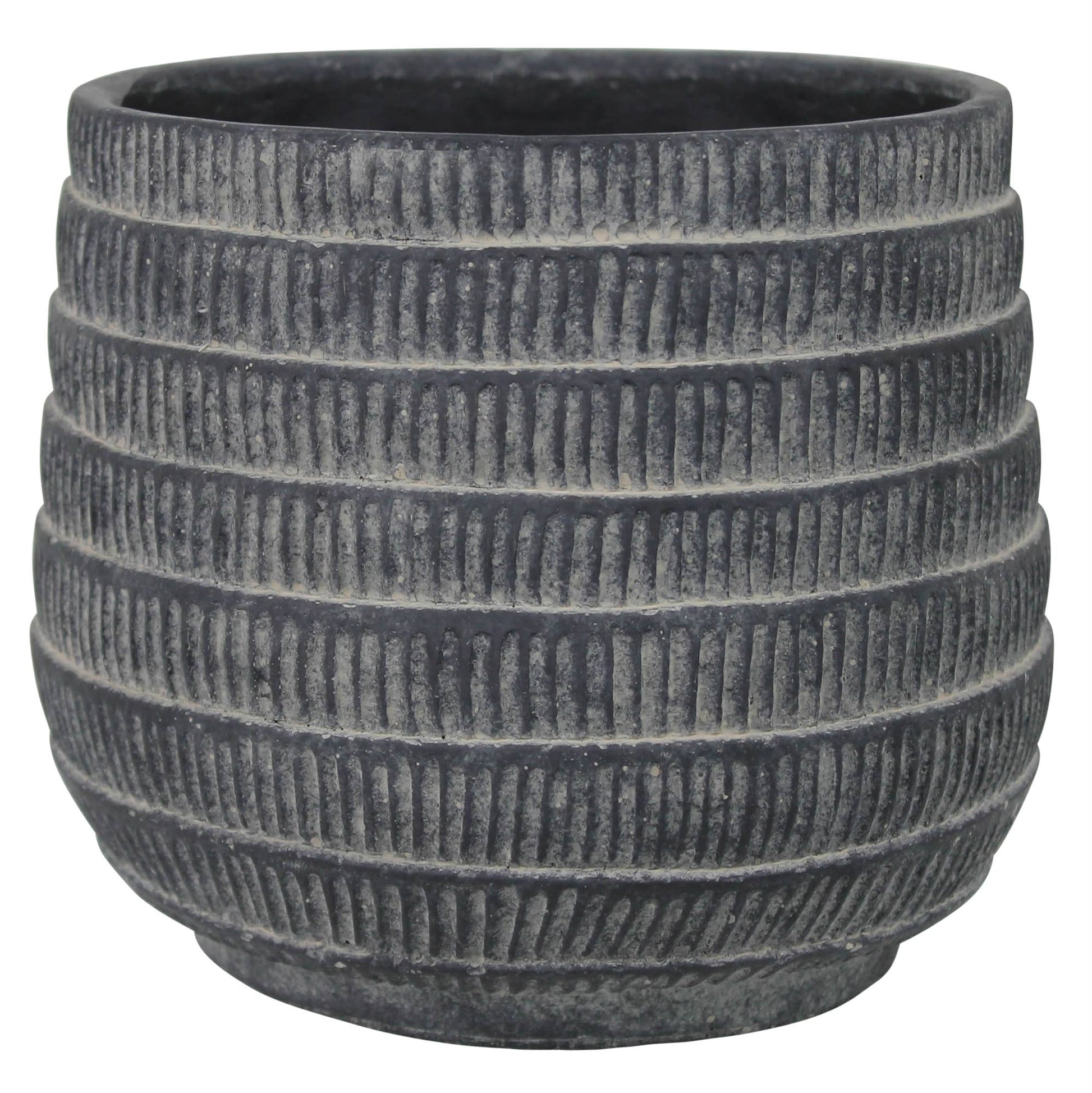 This charming cement cachepot channels rustic garden vibes with its textured ridges and weathered patina. Built tough from cast cement and completely watertight, it's ready to cradle your favorite plants in style. The Large size stands 6.5" tall and 7.25" wide, while the Medium option measures 5.25" tall and 5.5" wide. Perfect for adding that effortlessly cool, lived-in look to any space.