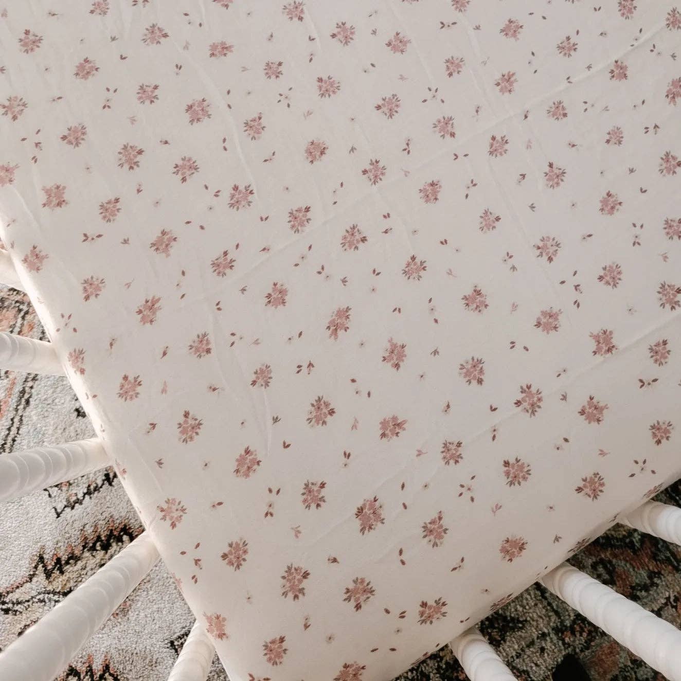 Our best selling Evie Floral pattern is now available in Muslin Crib/Toddler bed sheets and changing pad covers!