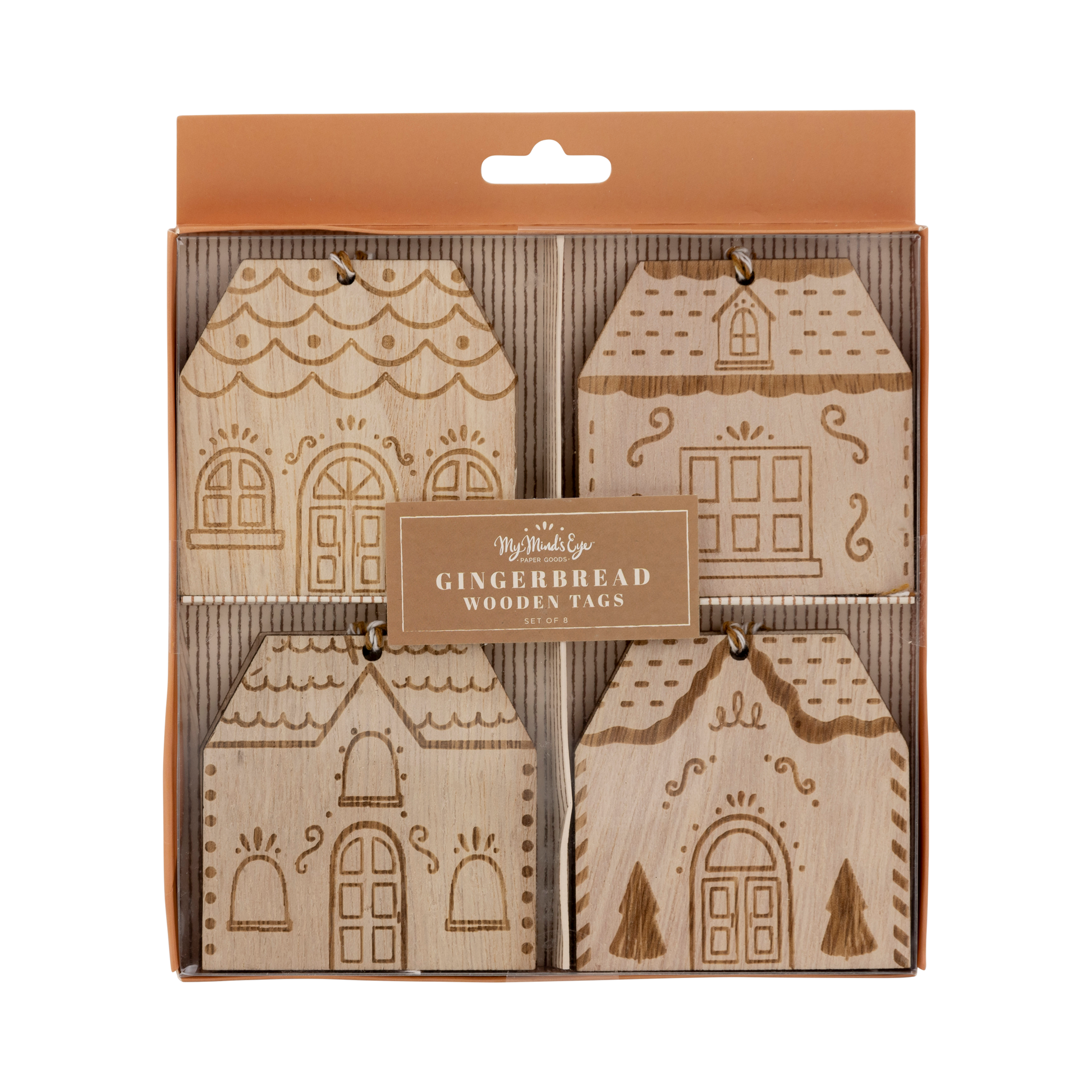 Add some extra sweetness to your gifts with these Gingerbread House Wood Tags. Made of durable wood, these tags feature playful gingerbread house designs for a unique touch. Perfect for labeling presents or adding to holiday decorations. * Set of 8 Tags * wood etched house designs * 2 each of 4 designs * bakers twine included