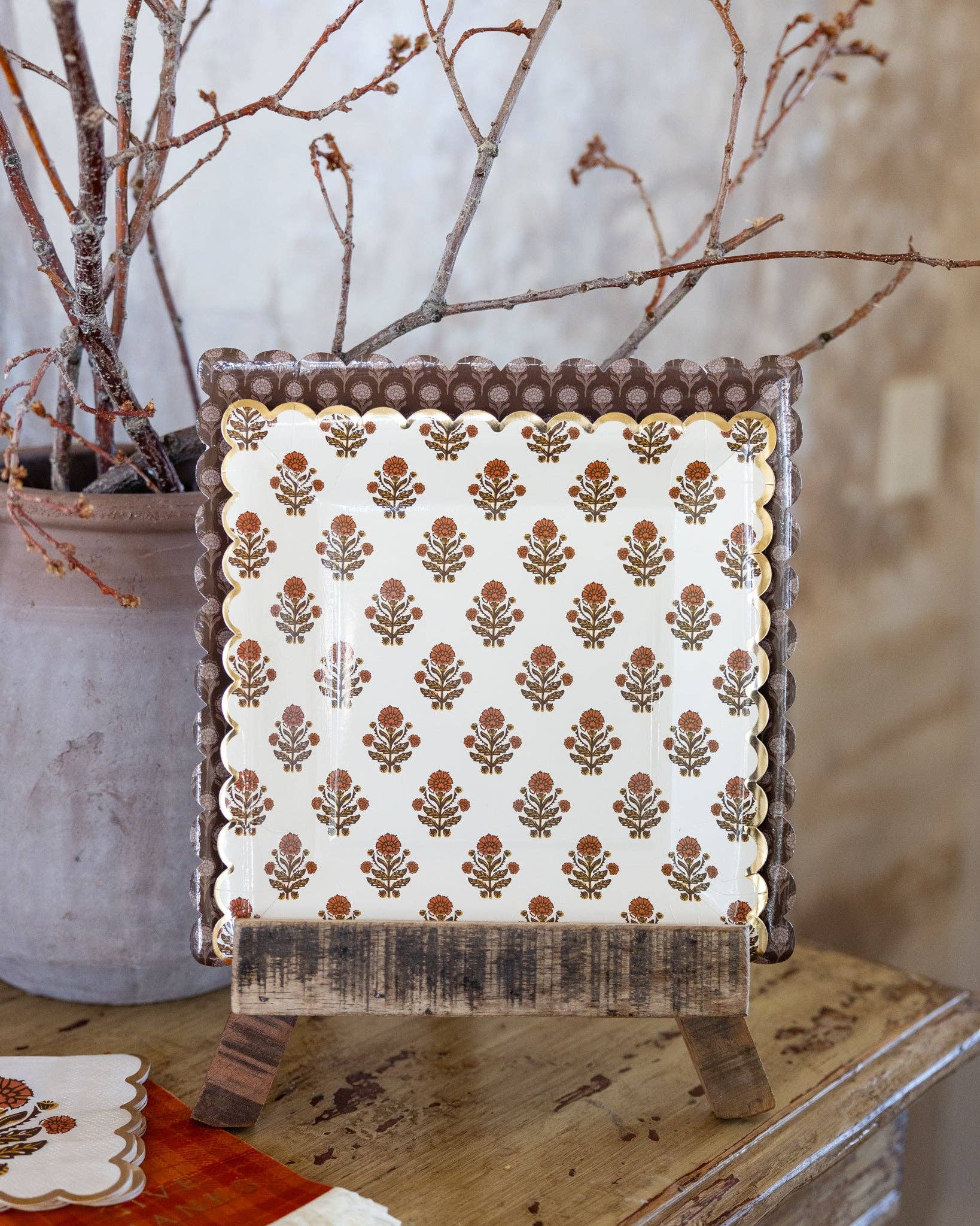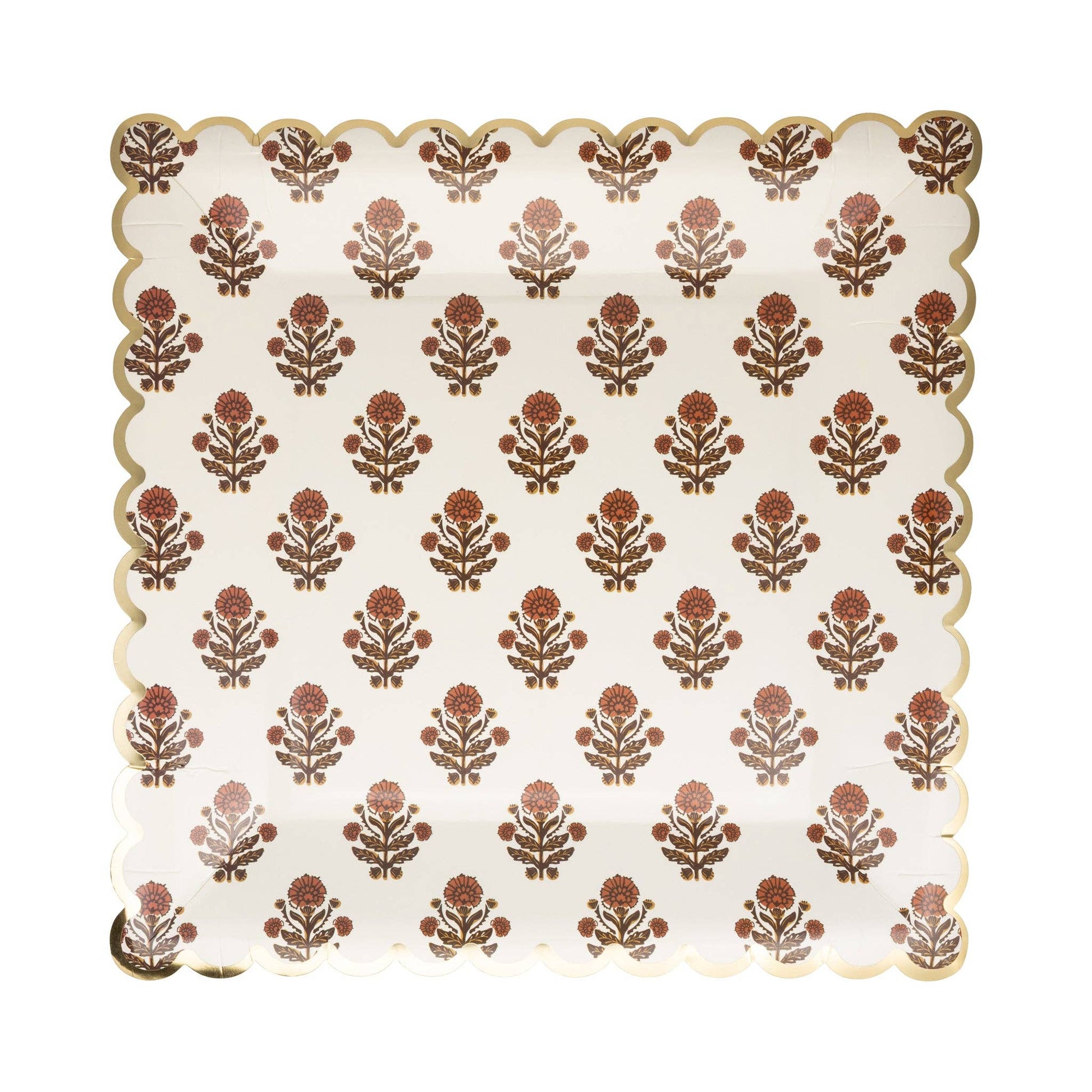 Celebrate the season with our Give Thanks Floral Plate. This elegant floral harvest plate is the perfect addition to any party spread. Show your gratitude and add a touch of style to your gatherings with this beautiful plate. • includes 8 shaped paper plates • 9 x 9 inches • gold foil.