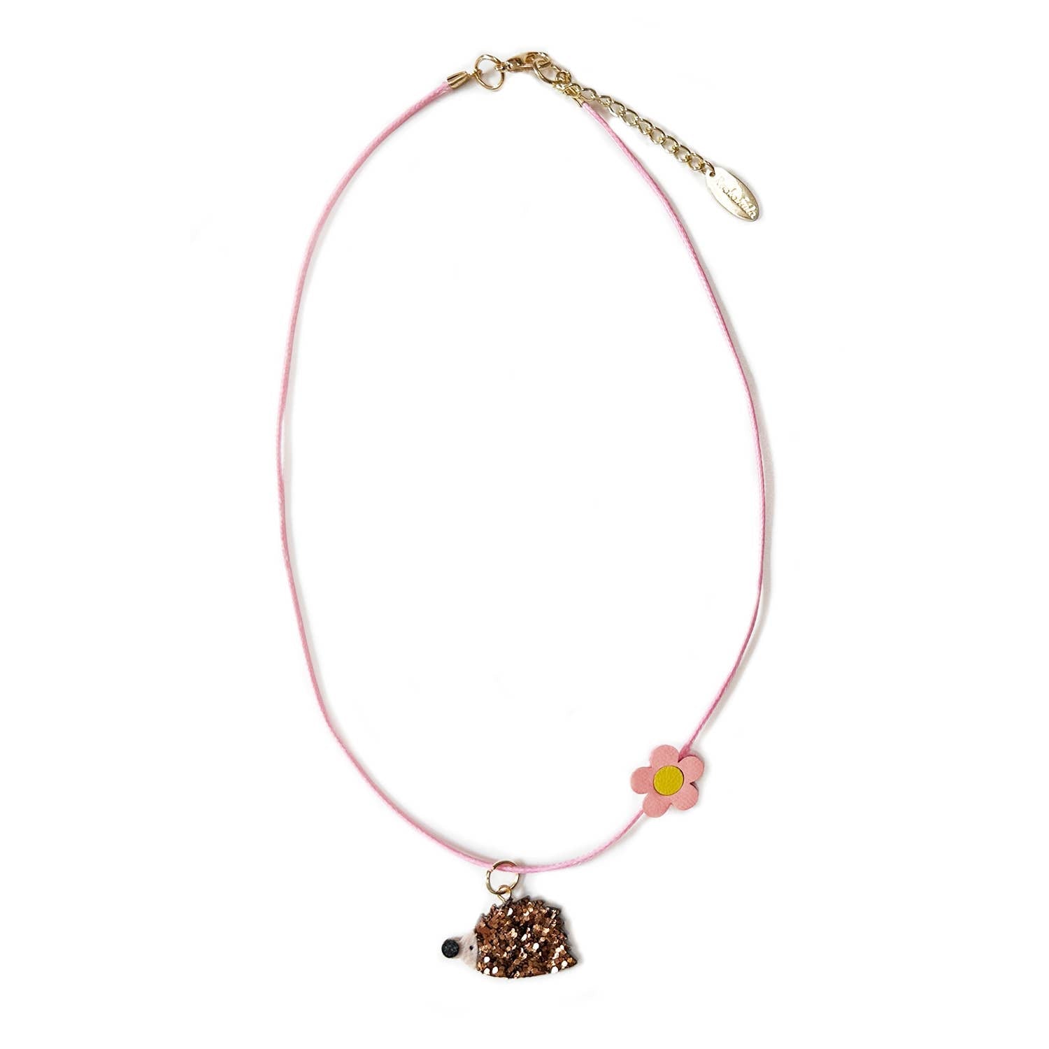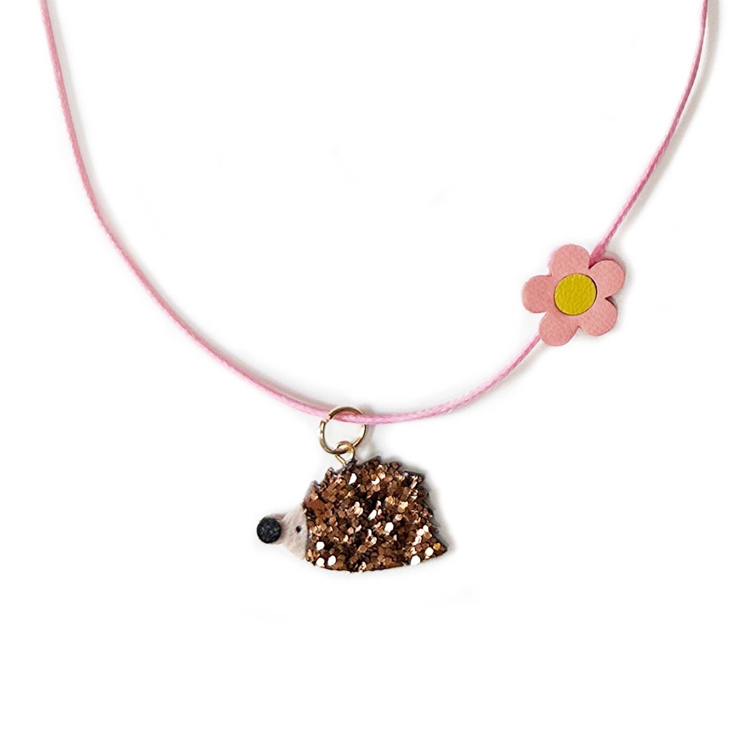 Perfect for nature lovers, our sweet Hattie hedgehog and tiny pink flower adorn this pale pink cord necklace. With a lobster clasp fastening and extender chain to ensure the perfect fit. Made using recycled PU. Not suitable for children under 36 months due to small parts.