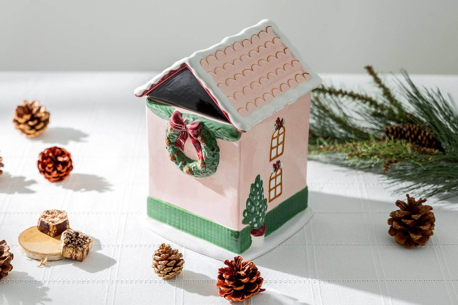 This charming cookie jar is lovingly handcrafted and hand-painted, so you might spot little air bubbles, tiny pinholes, or slight paint variations—just part of its unique ceramic charm! It features a silicone-sealed lid that keeps your treats fresh and ready to enjoy. Measuring 9.5” tall and 6.5” wide and deep, it holds up to 2 quarts of deliciousness. Hand washing is best, and it’s not microwave safe. Perfect for adding a sweet touch to your holiday kitchen!