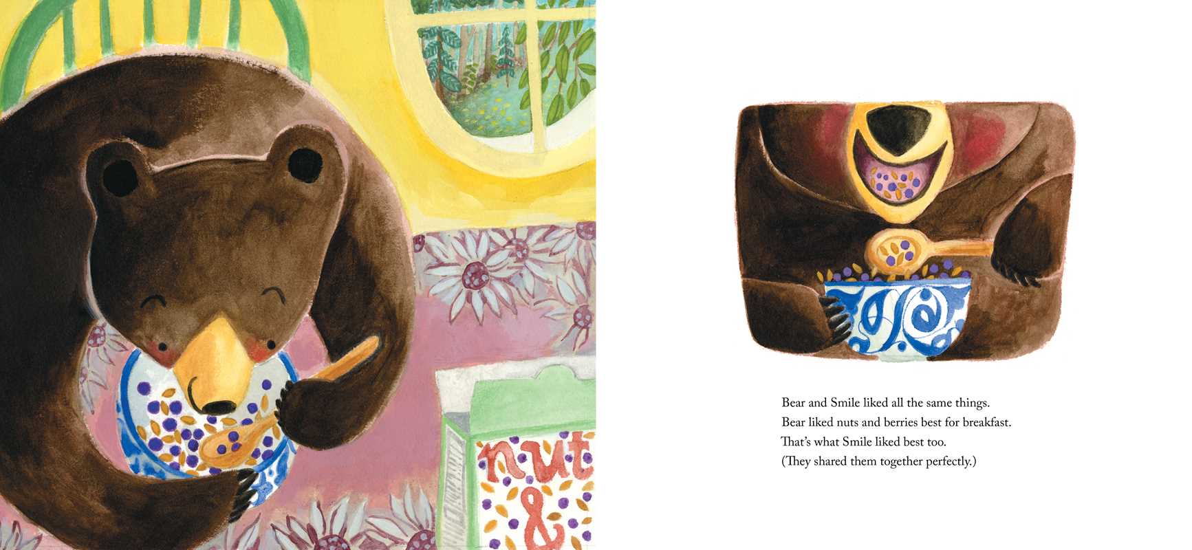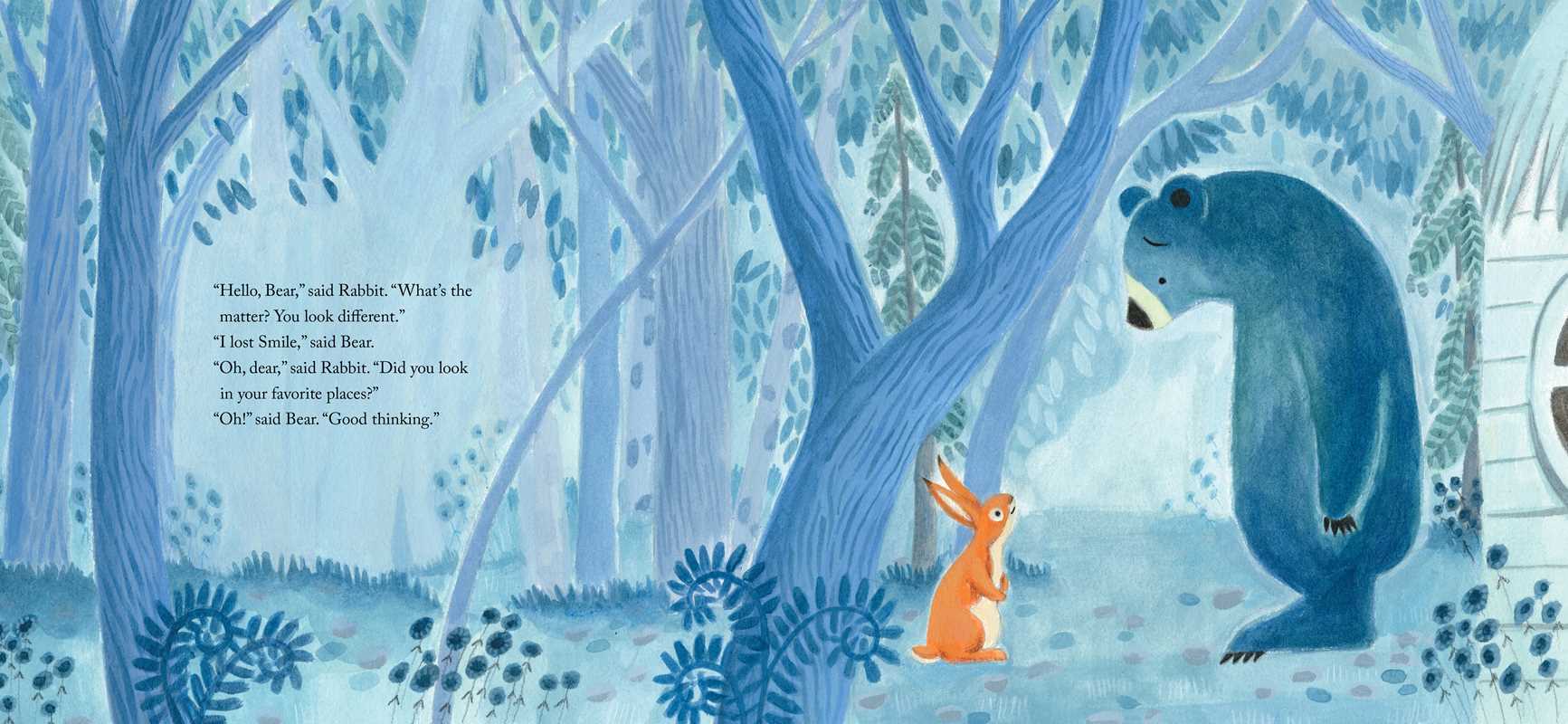 [Beach Lane Books] In this sweet and gentle picture book, Bear wakes one day to find his Smile gone and enlists his friends to help him find it. Bear and Smile are always together. They wake up together, swim by the waterfall together, and eat honey together. But one day, Bear wakes up and Smile is nowhere to be found. With the help of his woodland friends, will Bear be able to find his Smile again? This tender and special debut picture book explores sadness with a light touch and shows that sometimes a good friend can make all the difference.