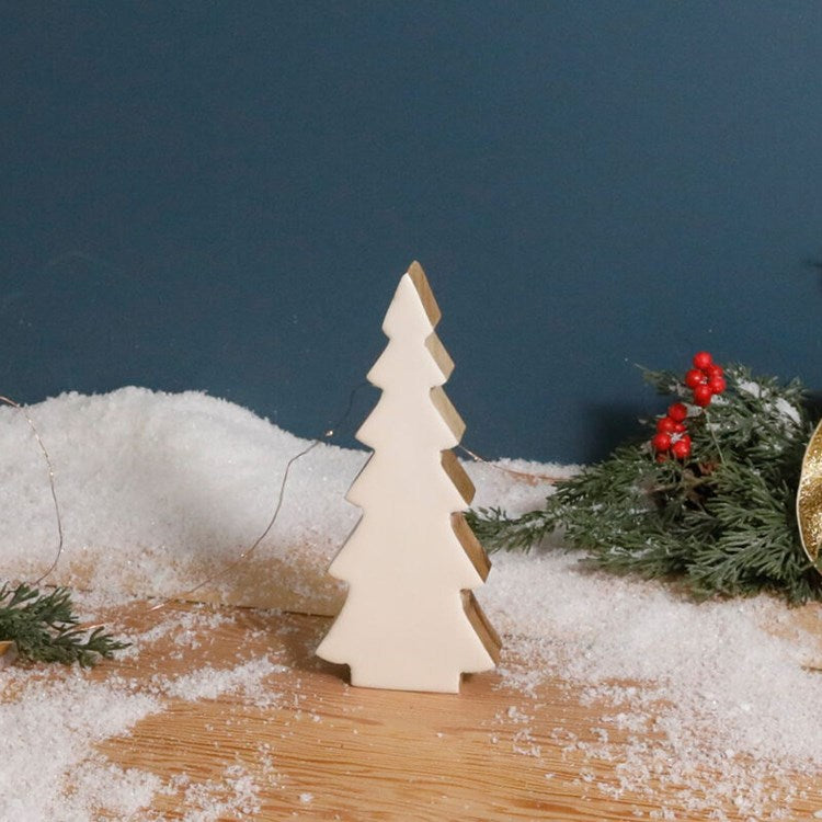Add charm to your holiday decor with these cute little trees! Made from mango wood and enamel, they're perfect for creating a festive Christmas village. Versatile and adorable, they can be displayed anywhere. (No need to chop down a real tree!)