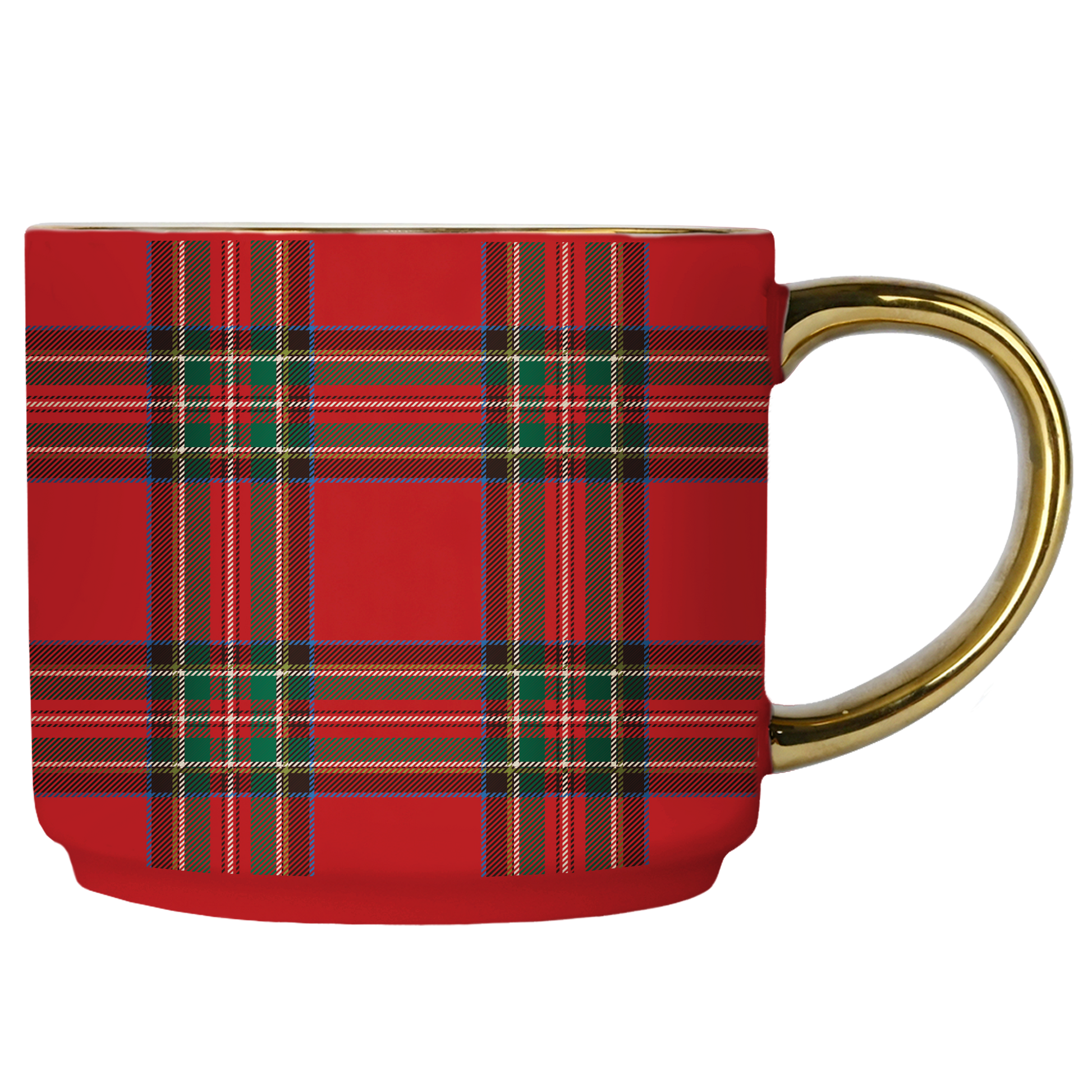 Add a classic touch to holiday displays with our 14oz red plaid mug, featuring a festive pattern and gleaming gold handle. Perfect for peppermint lattes, cocoa by the fire, and cozy gatherings, it’s a timeless piece for Christmas decor, seasonal drinkware collections, and thoughtful holiday gifting. DETAILS: • 14oz Fine Bone China • Size: 3.20" H x 3.75" W (5.45" w/ handle) • Original Design: Red Plaid • Design All Around Mug • Real Gold Details on Rim and Decal • The design printed on each mug may vary slightly from one mug to another • Designed in the USA, Imported • Hand Wash to Preserve Gold Finish • Wash Before Use and Avoid Abrasive Cloths When Cleaning • Do Not Microwave.