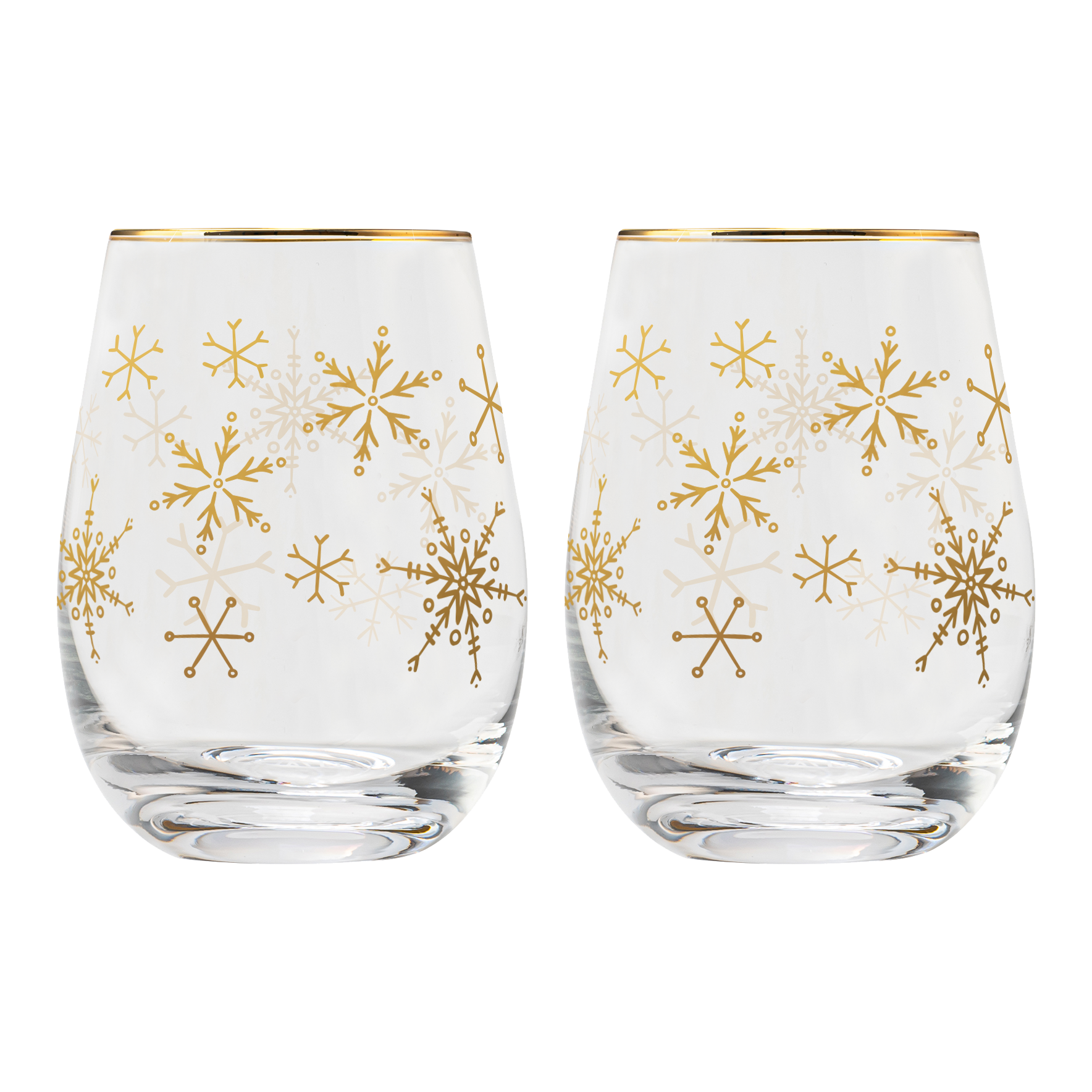 Elevate your holiday assortment with our Stemless Wine Glasses, featuring radiant gold snowflakes for a festive, elegant touch. Perfect for Christmas gatherings, holiday parties, and seasonal hostess gifts, this beautifully packaged set adds warmth and sparkle to any celebration. DETAILS: • 15.5oz Stemless Glassware - Soda-Lime Glass • Size: Top: 2.6" Widest: 3.3" Height: 4.5" • Real Gold Foil Detailing • Snowflake Design • Safe for Hot and Cold Beverages • Designed in the USA, Imported • WINE GLASS CARE: • Hand Wash Only • Do Not Microwave • Wash Before Use and Avoid Abrasive Cloths When Cleaning . **Sold Individually**
