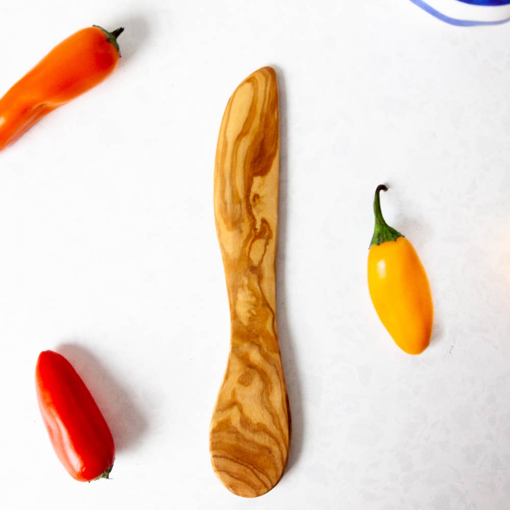 Give your tabletop an organic vibe with our artisan-made olive wood cheese spreader. Each knife is made from a single piece of olive wood for a beautiful, seamless finish. No two are exactly alike.