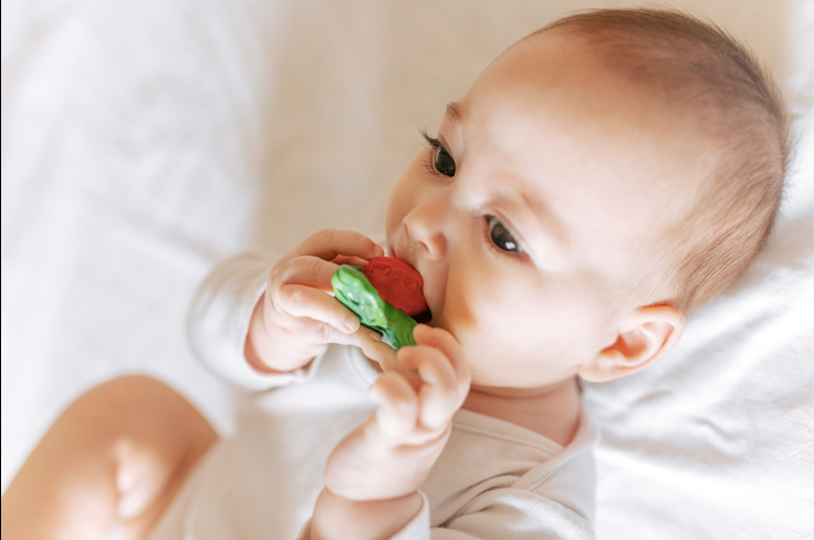 RAMONITA THE RADISH is a vegetable-shaped mini-teether - easy to hold or attach to a strap. Helping soothe teething gums and introducing babies to a healthy lifestyle at an early age.