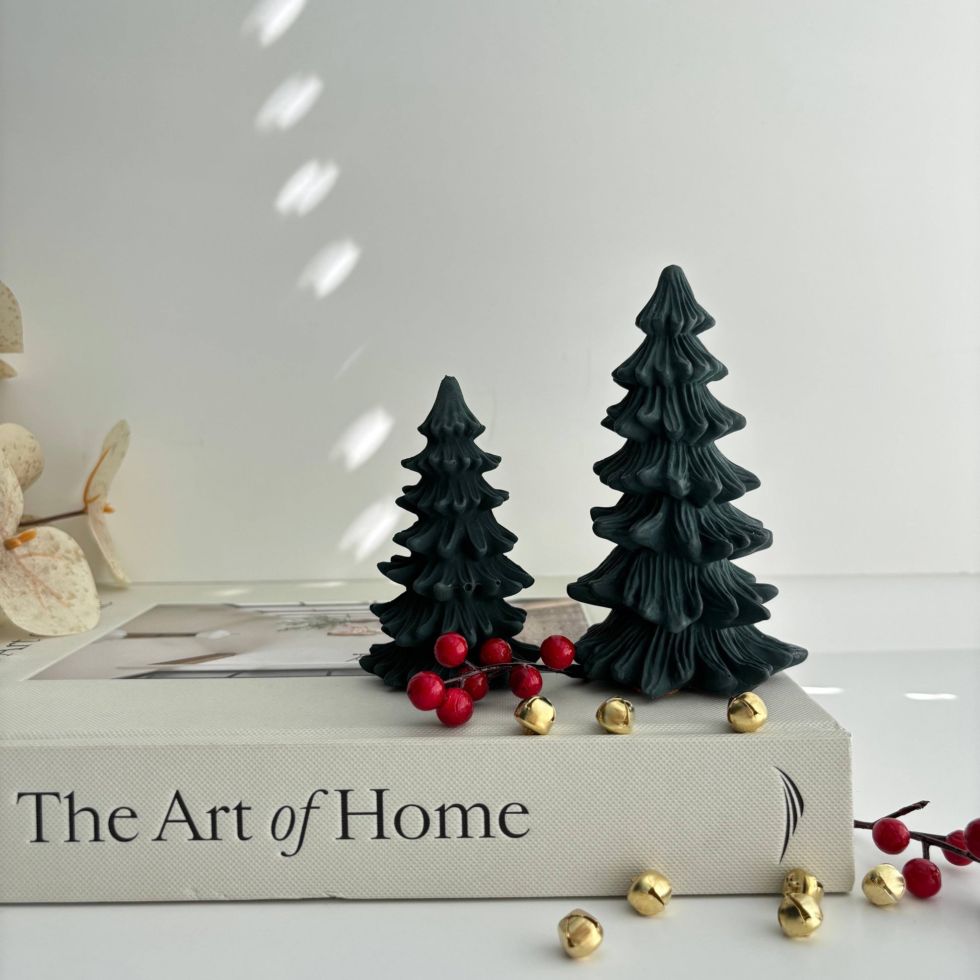 A refined of handcrafted spruce-inspired Christmas trees, featuring clean ridges and a soft, sculptural silhouette. Their minimalist design brings quiet elegance to mantels, shelves, and modern holiday displays. Sizes: • Large – 4.7” tall × 2.6” wide • Small – 3.5” tall × 2.2” wide Disclaimer: Each product is handmade from scratch. Due to the natural composition of concrete, air bubbles and subtle variations in color and pattern are normal and add to the uniqueness of each piece. As concrete is poured in small batches, slight differences in color, texture, and the finish on the back side are part of the artisanal process and are not considered faults. While the products are sealed with a water-resistant finish, they are not fully stain-proof and should be handled with care to maintain their beauty.