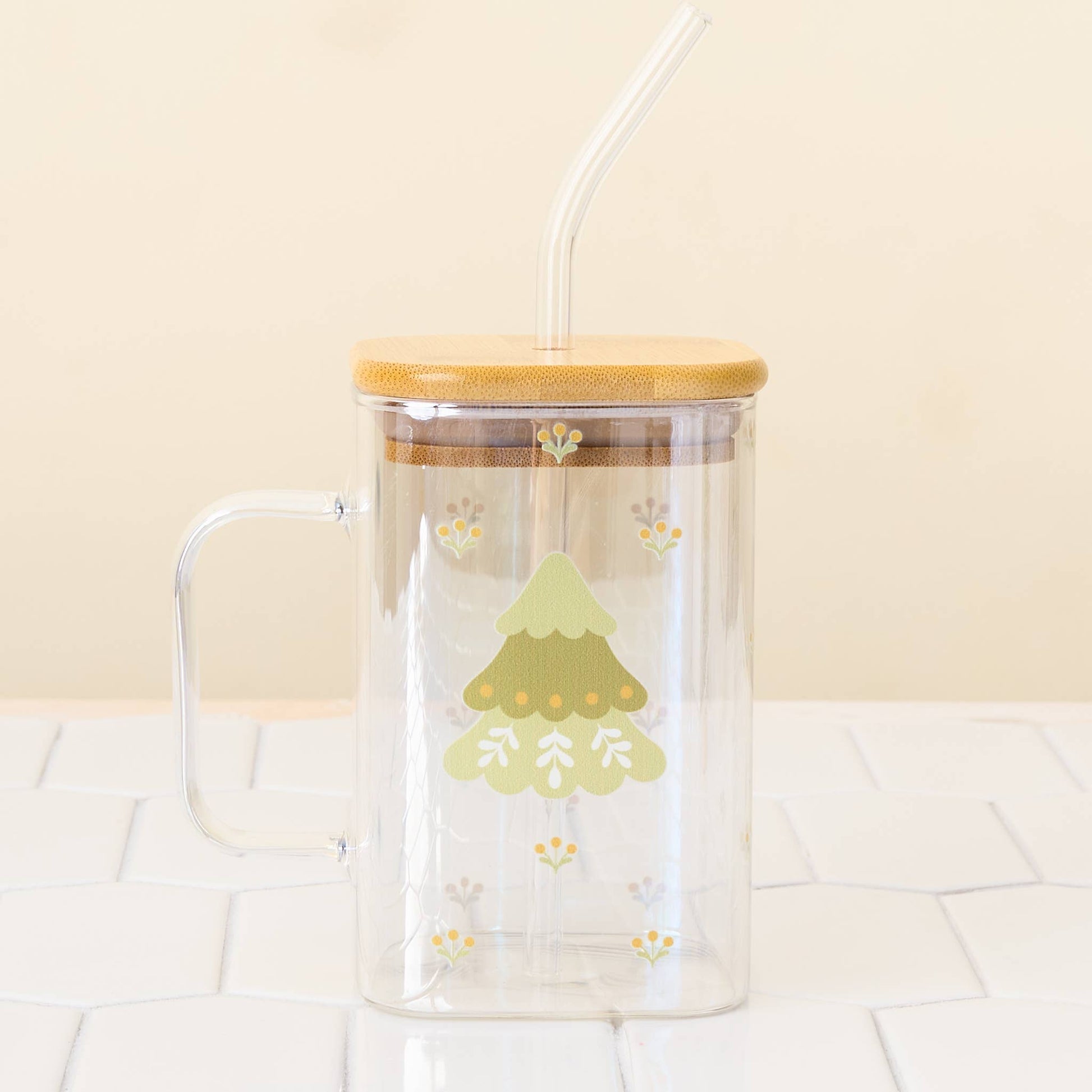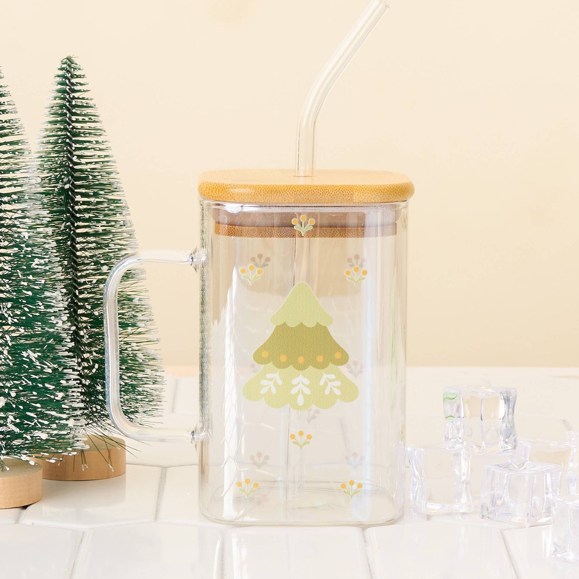 Our festive 20 oz square glass cups with a handle and iridescent reflection are the perfect pick-me-up! Whether it's for iced coffee or a Christmas cocktail, this cup will make it easy to drink in seasonal style. The bamboo lid fits snugly on top to secure your beverage so you can take it on-the-go! Beautiful, iridescent glass Square shape with perfectly crafted handle Bamboo lid and glass straw included. Design printed directly on the glass. Hand wash recommended