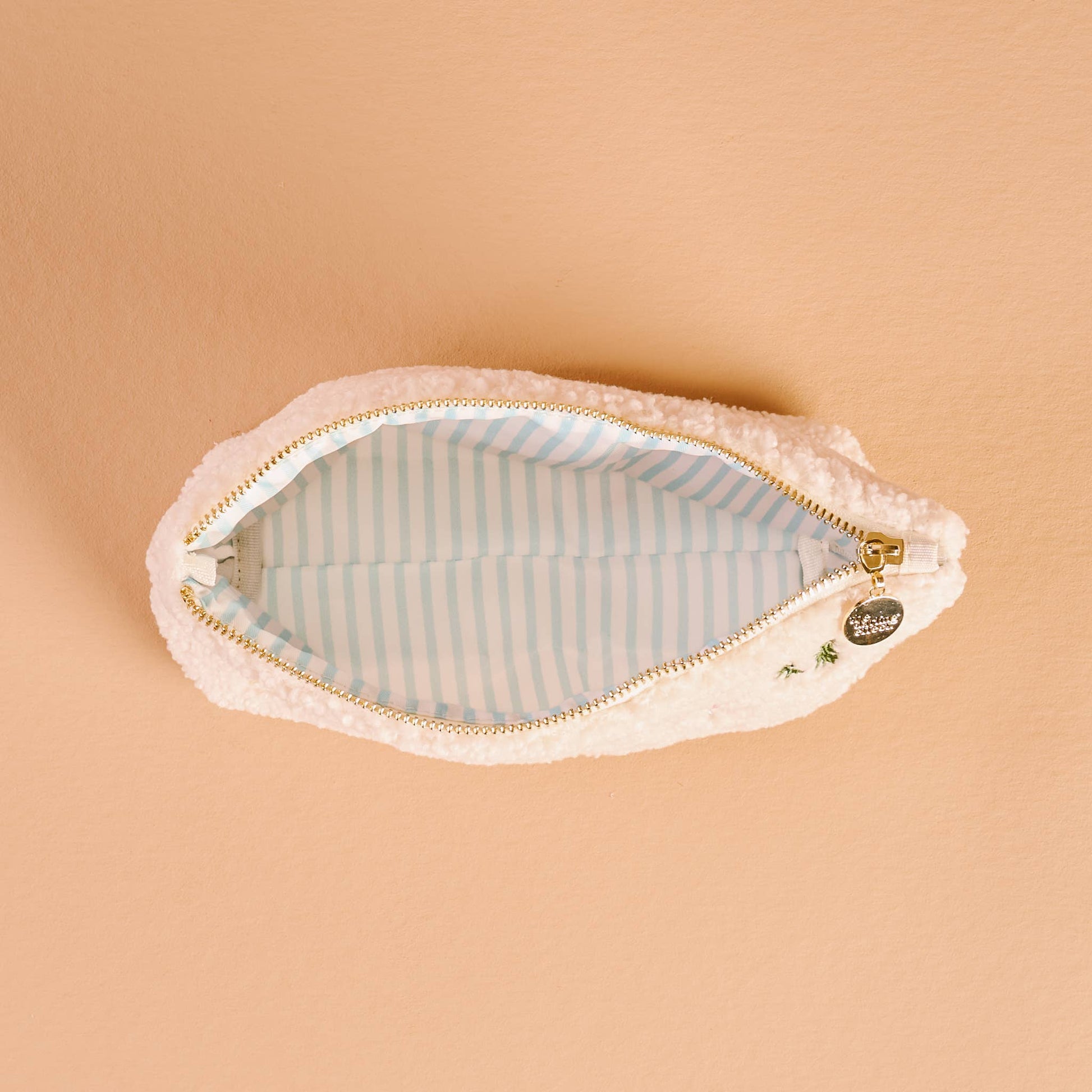 Stay cozy and organized from the chalet to the coffee run with our après-ski inspired Teddy Pouches. Crafted from ultra-soft sherpa and finished with luxe gold zipper details, this pouch brings slope-side charm to your daily essentials. With a wipeable printed lining and coordinating rectangle and square pouches, it's the perfect winter companion for travel, touch-ups, or fireside lounging.