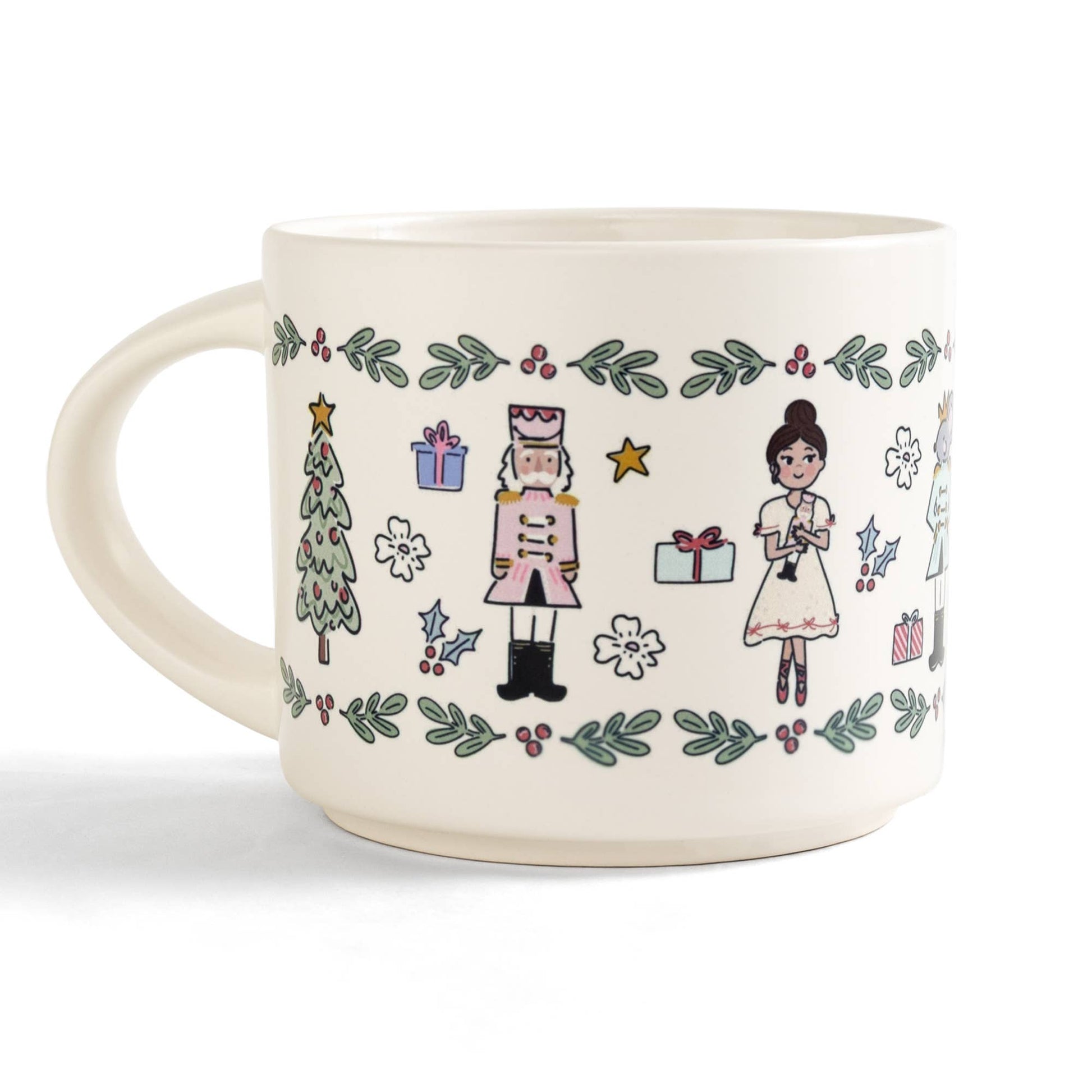 Step into a storybook holiday dream with this Nutcracker-inspired mug! Featuring a hand-drawn ballet scene with Clara, the Nutcracker, the Mouse King, and the Sugar Plum Fairy, this festive ceramic mug is adorned with twinkling snowflakes, wrapped gifts, and Christmas trees. Whether you’re sipping hot cocoa by the fire or enjoying your morning coffee with a touch of holiday magic, this mug is the perfect companion for cozy winter days. A must-have for ballet lovers and Christmas enthusiasts alike!