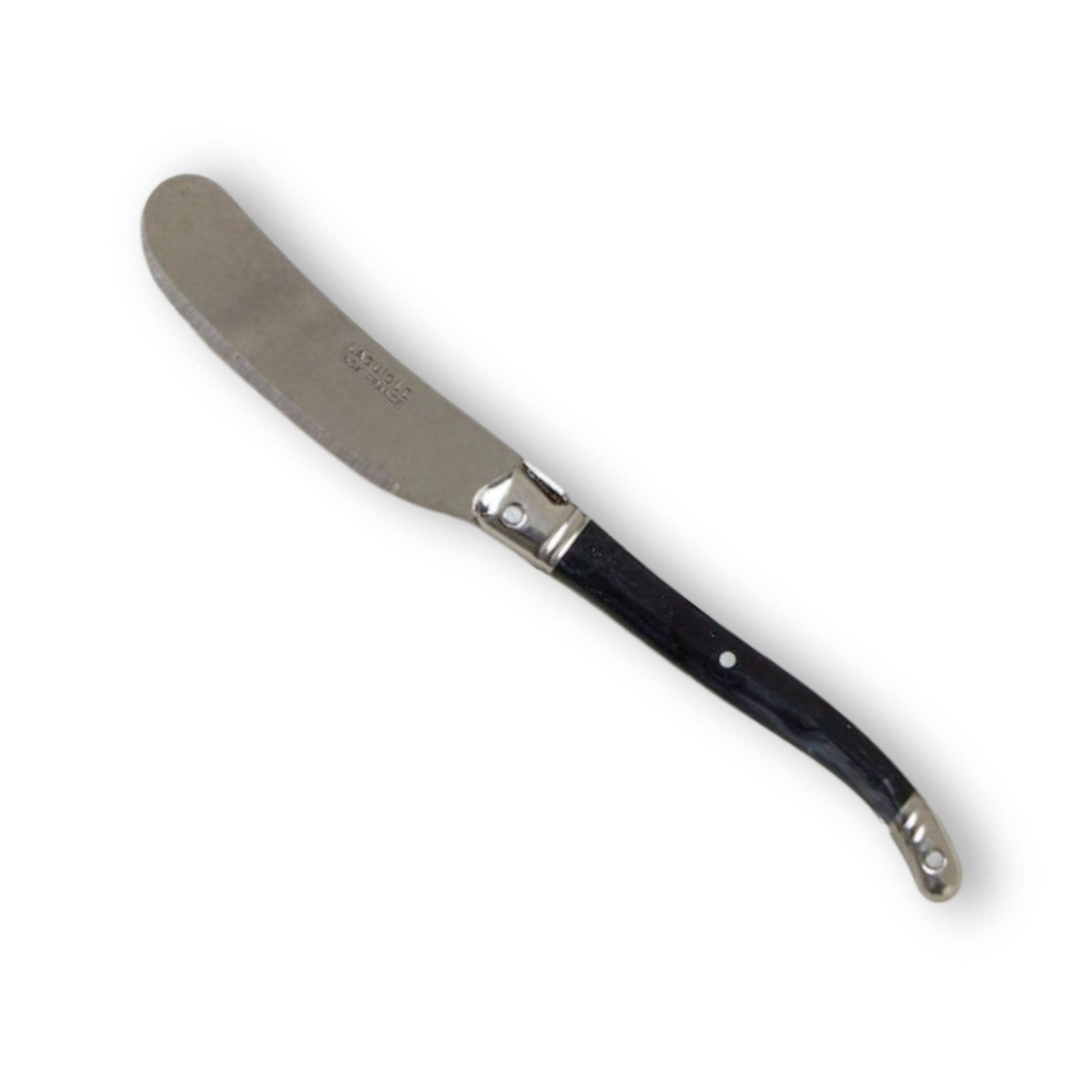 Elevate your serving experience with the elegant Laguiole Butter & Cheese Spreader. This stylish utensil is perfect for effortlessly spreading butter, soft cheeses, or even your favorite preserves and spreads. Its classic Laguiole design brings a touch of sophistication to any table setting, making it an ideal kitchen tool for both casual and formal gatherings. Our Laguiole pieces are made in France with an unwavering commitment to quality and skill. Each item is meticulously handcrafted by artisans who follow traditional methods, ensuring that every product meets the brand’s high standards. Stainless steel blade for smooth, even spreading. Avoid soaking for long periods in water. Perfect for adding a touch of elegance to your charcuterie board, this Laguiole spreader is a must-have for anyone who enjoys the finer details in entertaining.