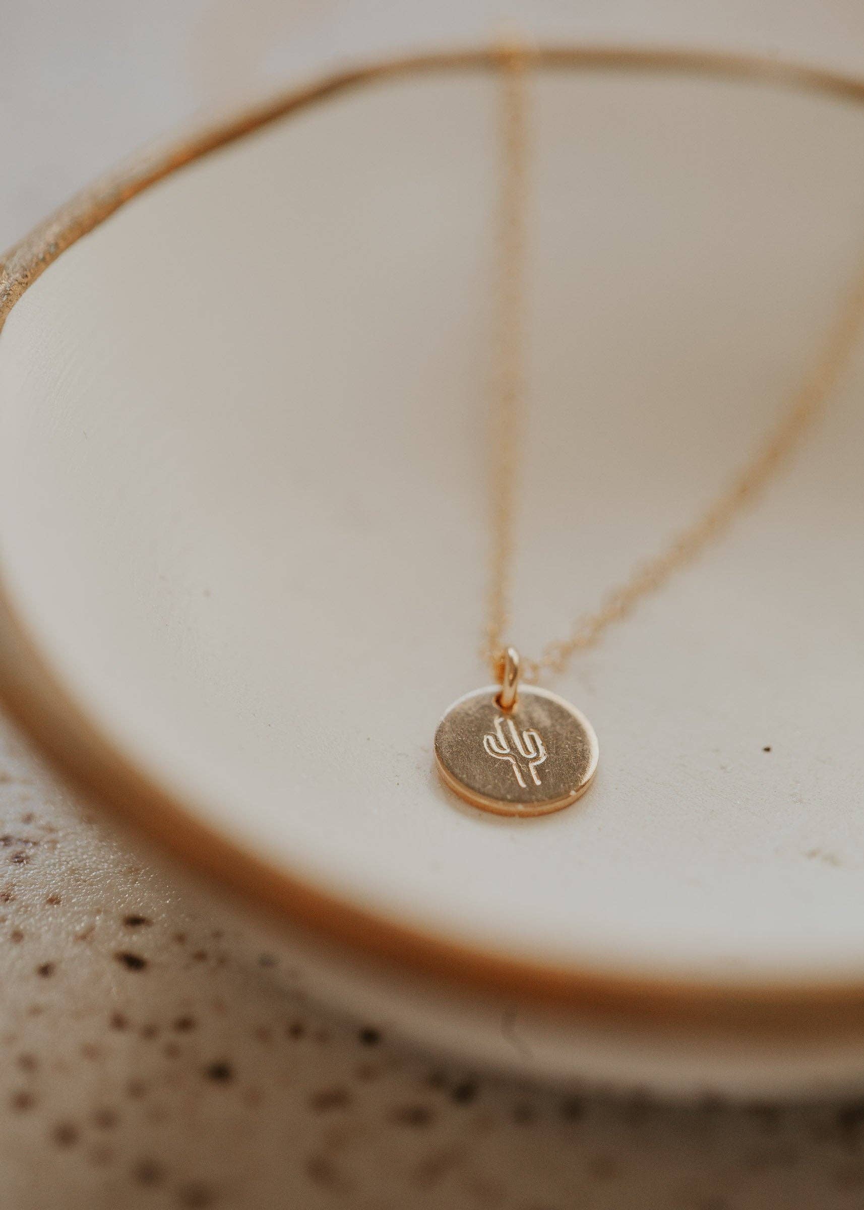 Our sweet, tiny dot stamped with of one of our little symbols. * A solid 9mm disc is hand-stamped and attached to a delicate 18 chain. * Available in 14kt Gold Fill. * Handmade in Eau Claire, WI. Our jewelry is handmade to order so each piece will be unique and may vary slightly from what is pictured.
