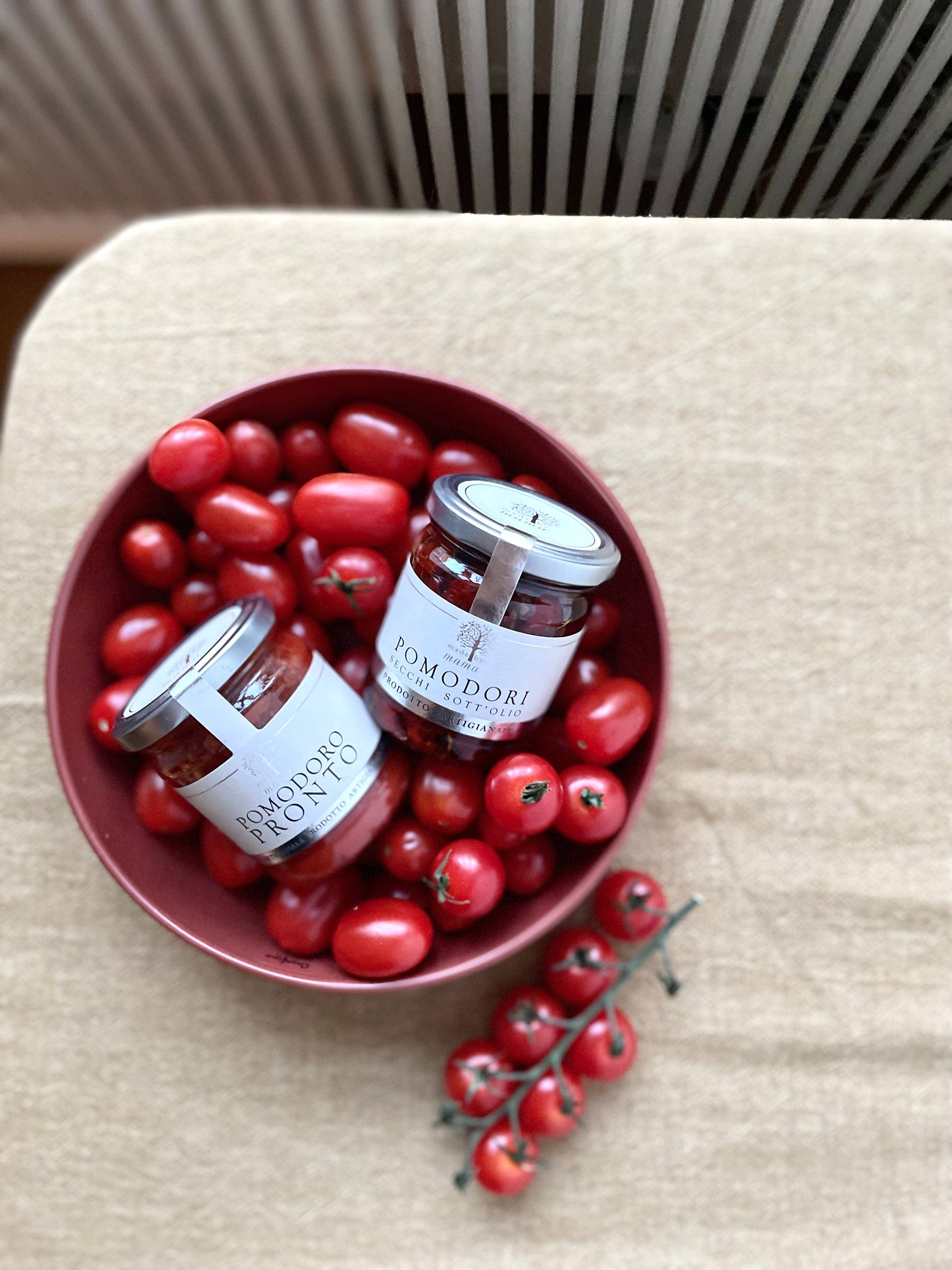 You can taste Italy's warmth and sweetness in these tomatoes. The components of our sauce are simple, but the real secret is in the ratio of the ingredients and the time invested to extract the right taste. We use this sauce in Pasta al pomodoro, as a base on pizza, or when we want to give stews a little extra love.