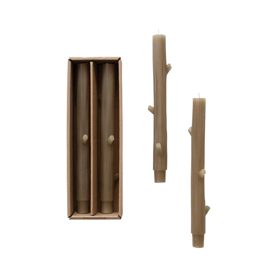 Add some cozy and whimsical charm to your home with our Twig Shaped Taper Candles in light olive. The rustic and birch-inspired look will bring a natural and warm atmosphere while adding a dash of personality. Light up your space (literally and figuratively) with these unique and quirky candles. Sold separately.