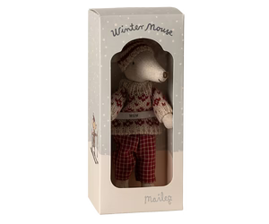 A mouse ready for hours of fun on the slopes during the cold wintertime. Each playset contains a warmly dressed mouse with a pair of ski and poles. Look at the tiny knitted hat that will keep the ears warm.