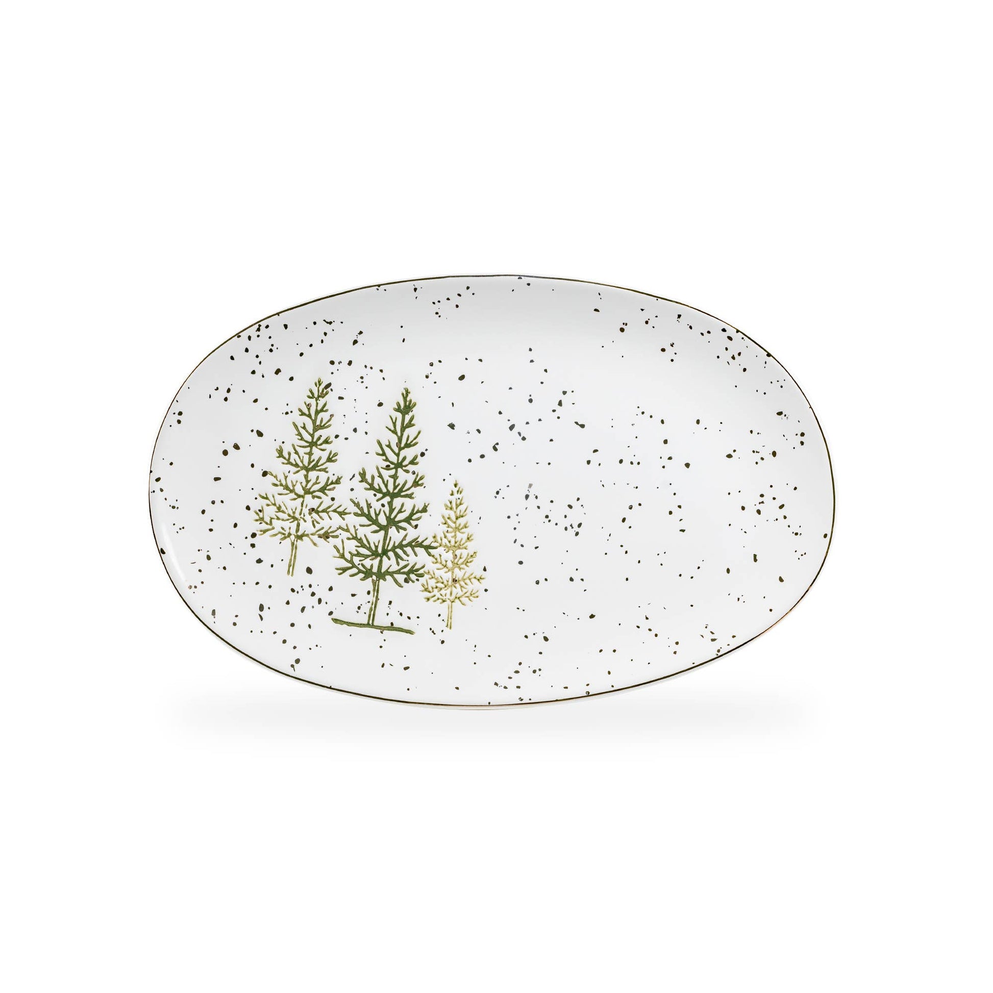 The Winter Pine Trees 12” Oval Platter features elegantly engraved pine trees, accented by shimmering gold specks that add a touch of sophistication. The neutral color palette complements various seasonal settings, while the sturdy oval shape provides ample space for serving an array of dishes, from appetizers to desserts. Specifications: Platter Dimension: 12” Length x 7.7” Width. Material: Stoneware. Care Advice: Dishwasher Safe. Hand wash recommended. Not microwave safe due to gold detailing. Grace Teaware Winter Pine Trees 12" Oval Platter.