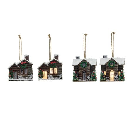 Add a touch of coziness to your holiday decor with the Wood Cabin Ornament. Choose from two styles featuring festive wreaths and a charming log cabin design. Perfect for adding a rustic touch to any Christmas tree.
